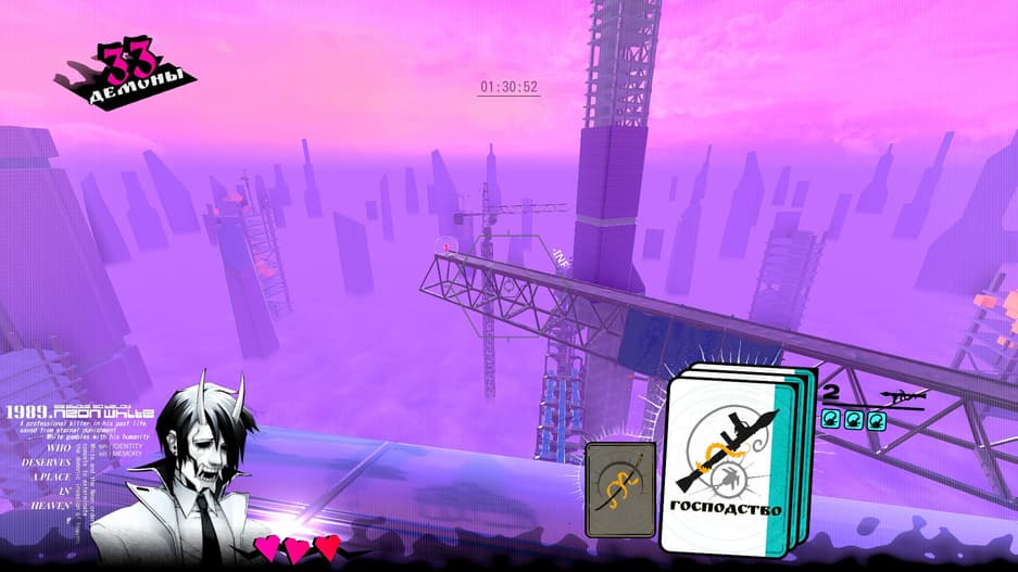 Хотя большинство локаций в Neon White можно пройти за минуту, их приятно изучать в поисках секретов. То же самое касается управления. Оно очень отзывчиво. Белый полностью контролирует свои движения на земле и в воздухе. Демоны крупные, и промахнуться по ним сложно. Расставлены они таким образом, что находятся всегда на виду. Поэтому ошибки всегда на совести игрока.