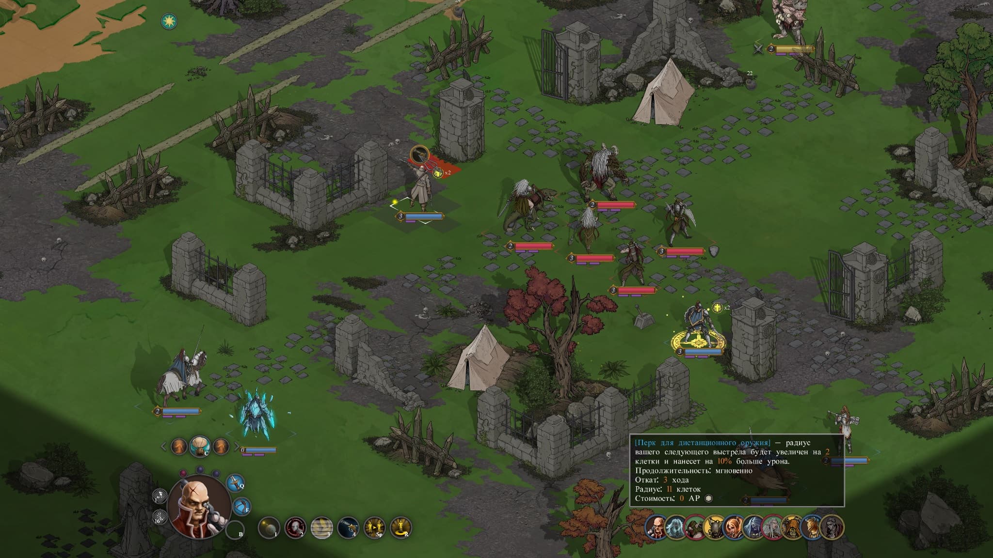 Места в битвах не хватает. Воины занимают от 2 до 6 клеточек, из-за чего бесцельно толпятся в узких проходах и часто погибают. Неожиданно, кроме атак в ближнем бою, все вояки наносят и урон на расстоянии. Боезапас ограничен – изначально по шесть выстрелов у бойцов и пятнадцать у рейнджера.