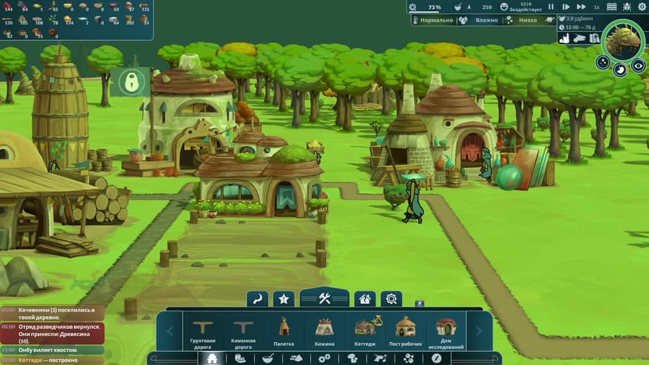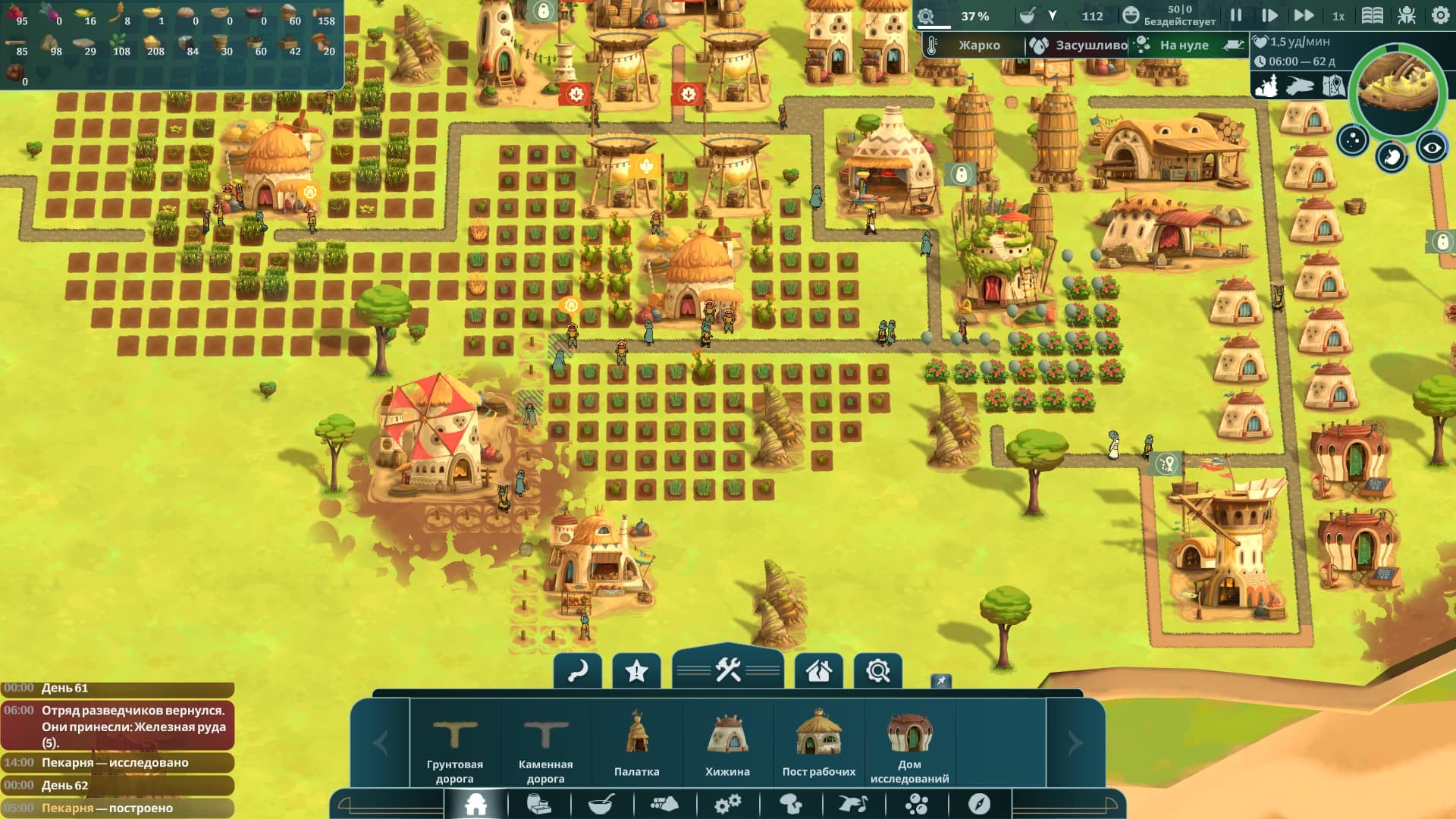 Когда базовые потребности будут удовлетворены, можно заняться развитием: проложить дороги для увеличения скорости работников; изучать технологии, которые окажутся незаменимыми в будущем; отправлять разведчиков, чтобы они возвращались со знаниями, ресурсами и людьми.