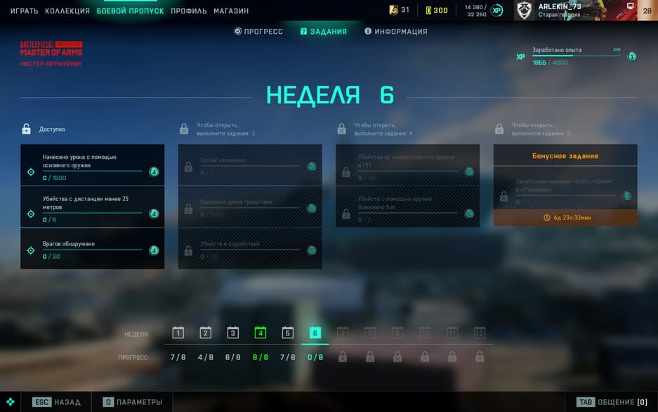 Задания боевого пропуска не напрягают — выполняются сами по себе пока играешь. Открываются еженедельно — по восемь заданий на протяжении двенадцати недель. Этого с головой хватит, чтобы прокачать боевой пропуск — в его уровень «капает» и опыт, полученный игроком во время матчей. За 10 часов удалось получить 31 уровень боевого пропуска, а прошло только пять недель сезона — математика подсказывает, что при активной игре 100 уровень возьмётся быстрее, чем закончатся задания.