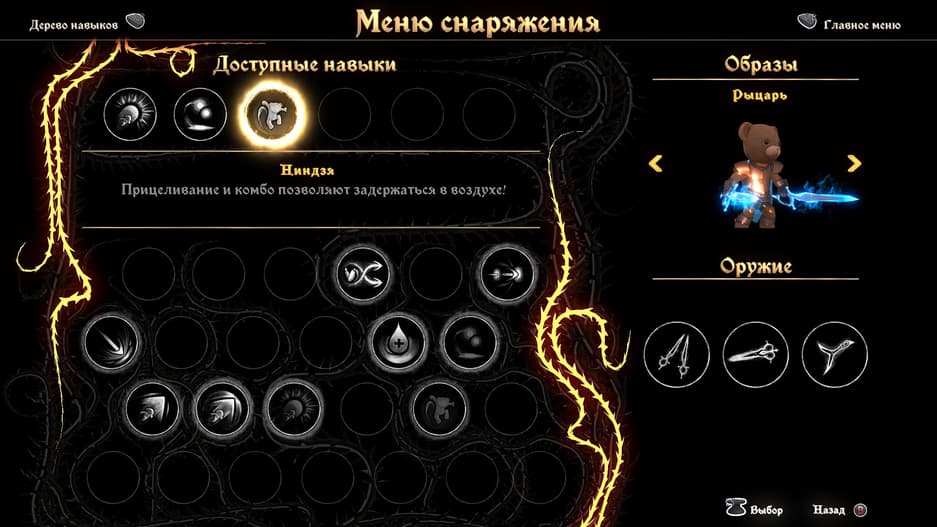 В локациях мишка ищет навыки, которые устанавливаются в открытые ячейки: возможность набирать больше опыта, зависать в воздухе, эффективнее лечиться. Нечто похожее было в Hollow Knight. Часть сфер навыков будут недоступны или спрятаны, поэтому через время на уровень можно вернуться и забрать. Это необязательно, но понравится любителям коллекций и достижений.