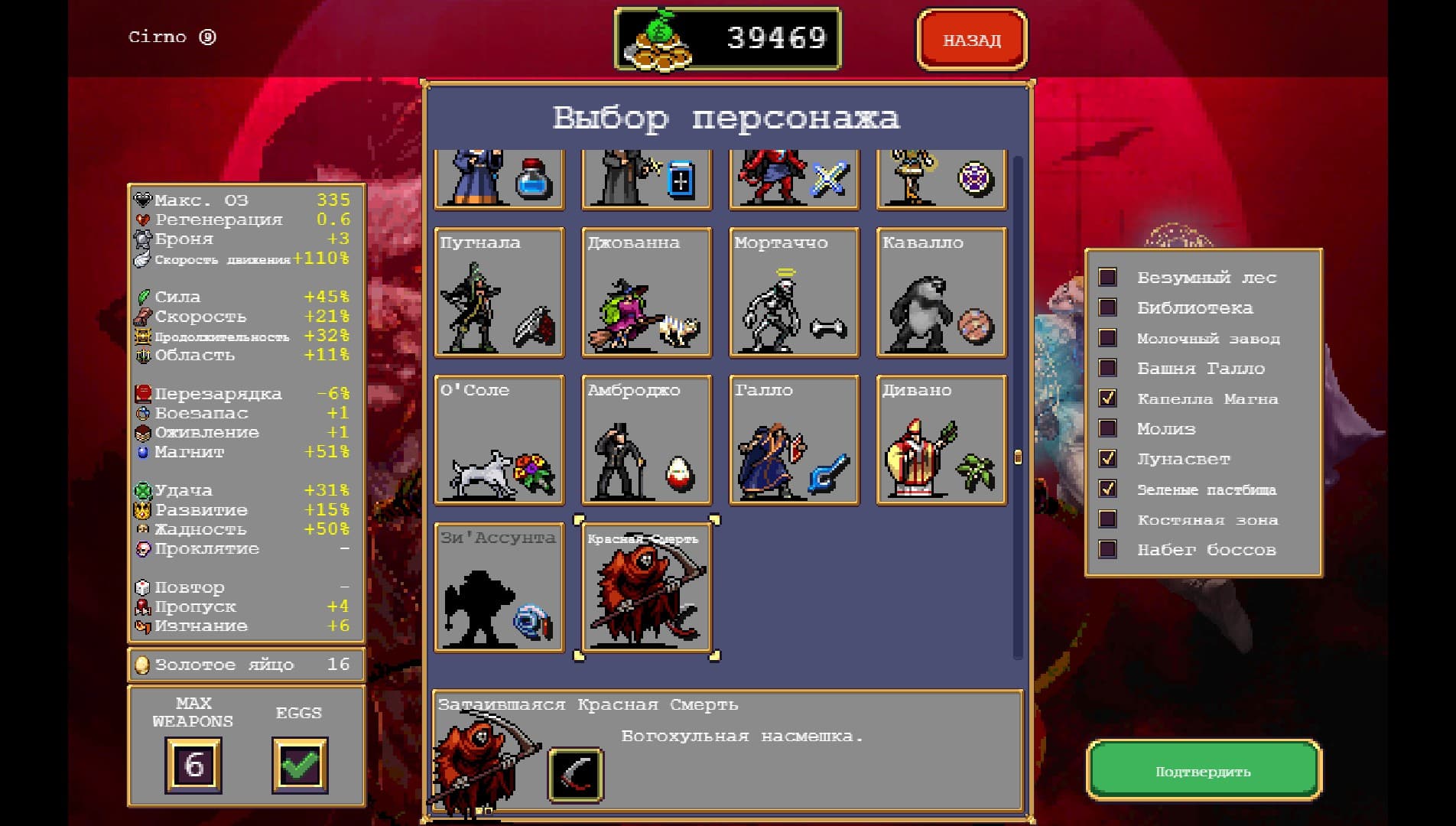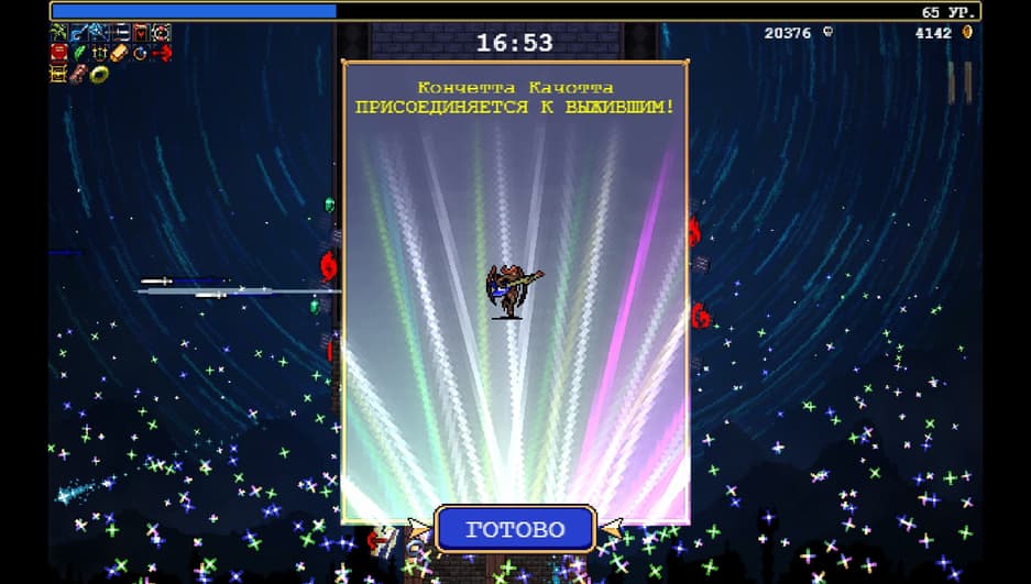 Vampire Survivors – это универсальная игра. Она подойдет тем, кто хочет отключить мозг и насладиться чистым геймплеем. Понравится любителям находить секреты в неожиданных местах. Здесь легко почувствовать себя всемогущим, собрав и прокачав артефакты. Радует и разнообразие персонажей, как стандартных, так и шутливых — вроде скелета, собаки или даже дерева.