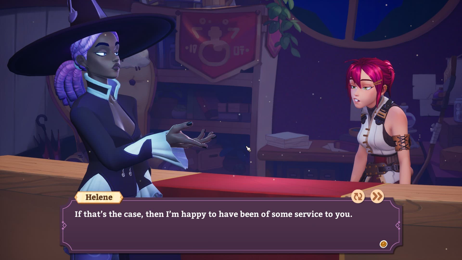 Готовые зелья выкладываются на витрину, чтобы привлечь побольше клиентов. Текущие события в мире также влияют на популярность зелий. Если люди увидели дракона, то захотят закупиться зельями защиты от огня. Разместив все необходимое на прилавок, игрок открывает магазин.
