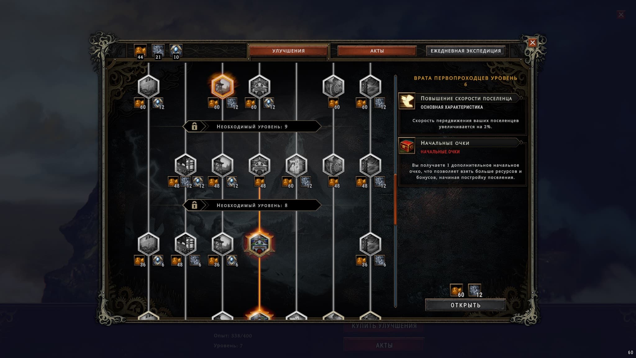 В случае победы выдаётся опыт для повышения уровня. Определённый уровень откроет доступ к новым возможностям и зданиям. Кроме этого, есть отдельные ресурсы для покупки улучшений. Всё это потенциально должно упростить игру, но здесь дополнительным стимулом выступает уровень сложности. Чем сложнее – тем выше награда и больше шансов на провал. Фанату игры важно настолько преисполниться в знании механик, чтобы уметь находить выход из самых запутанных ситуаций.