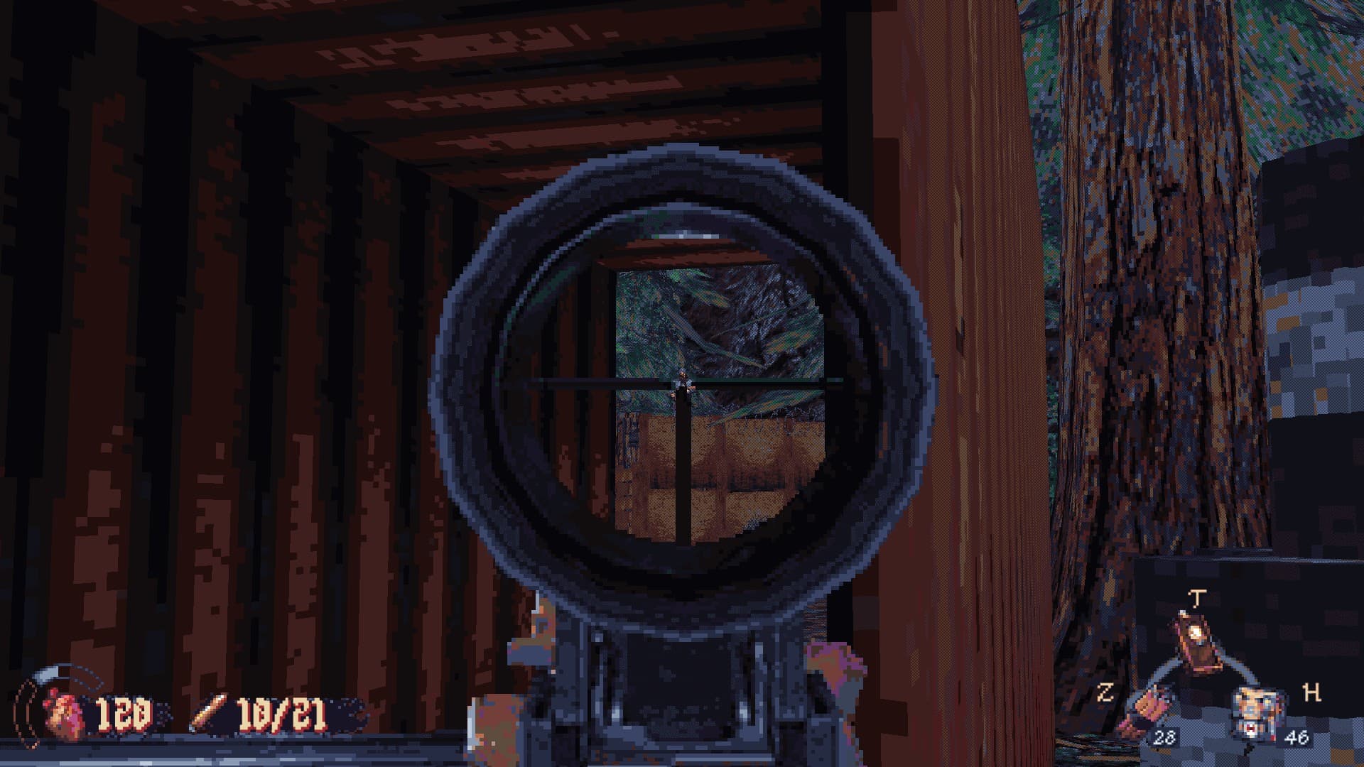 И стрельба приносит удовольствие при использовании. Огнестрельным оружием, вроде пистолета, автомата или винтовки можно отстрелить голову незадачливому культисту из любой точки на карте. Главное видеть цель, а уж точность позволяет.