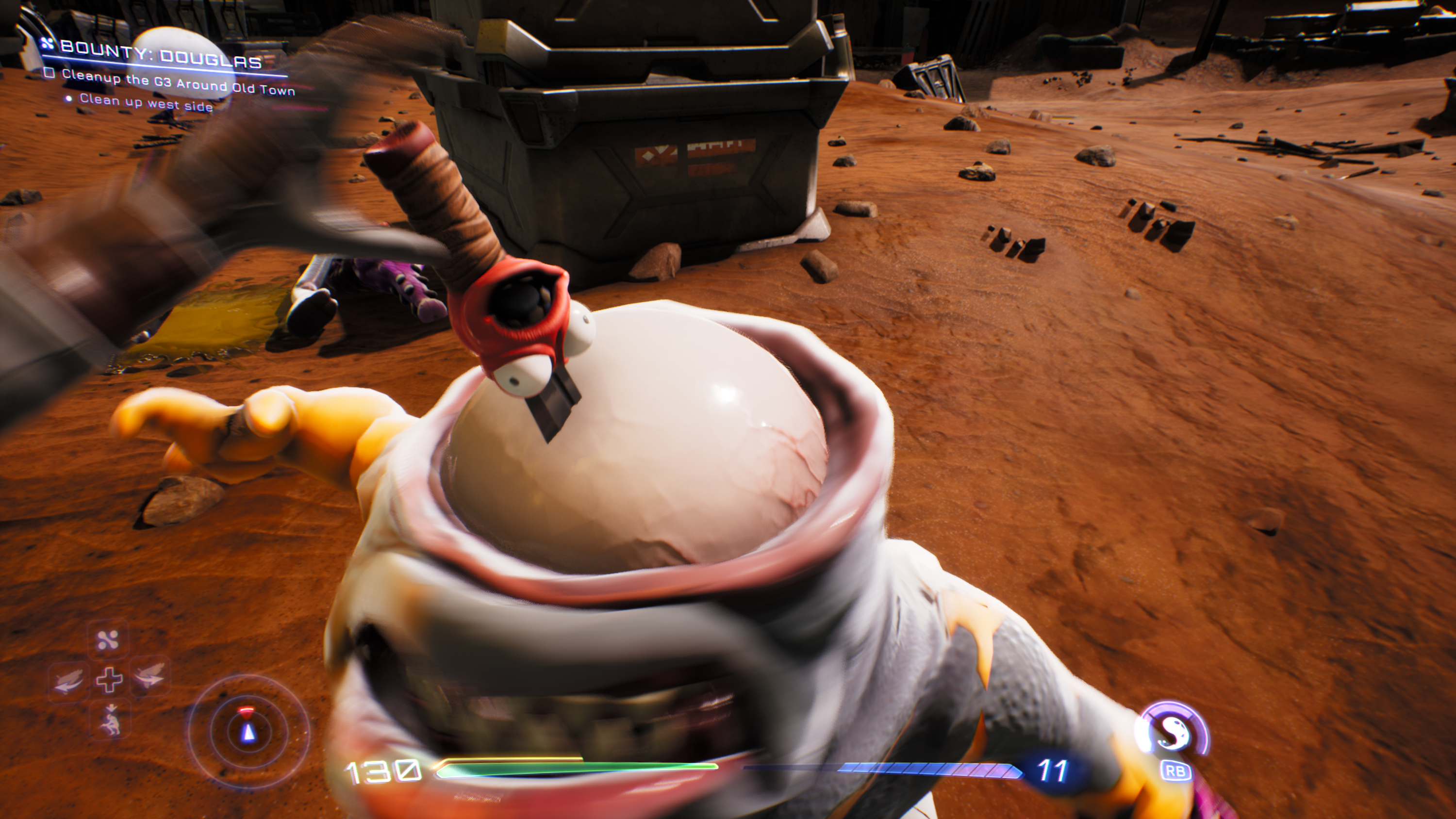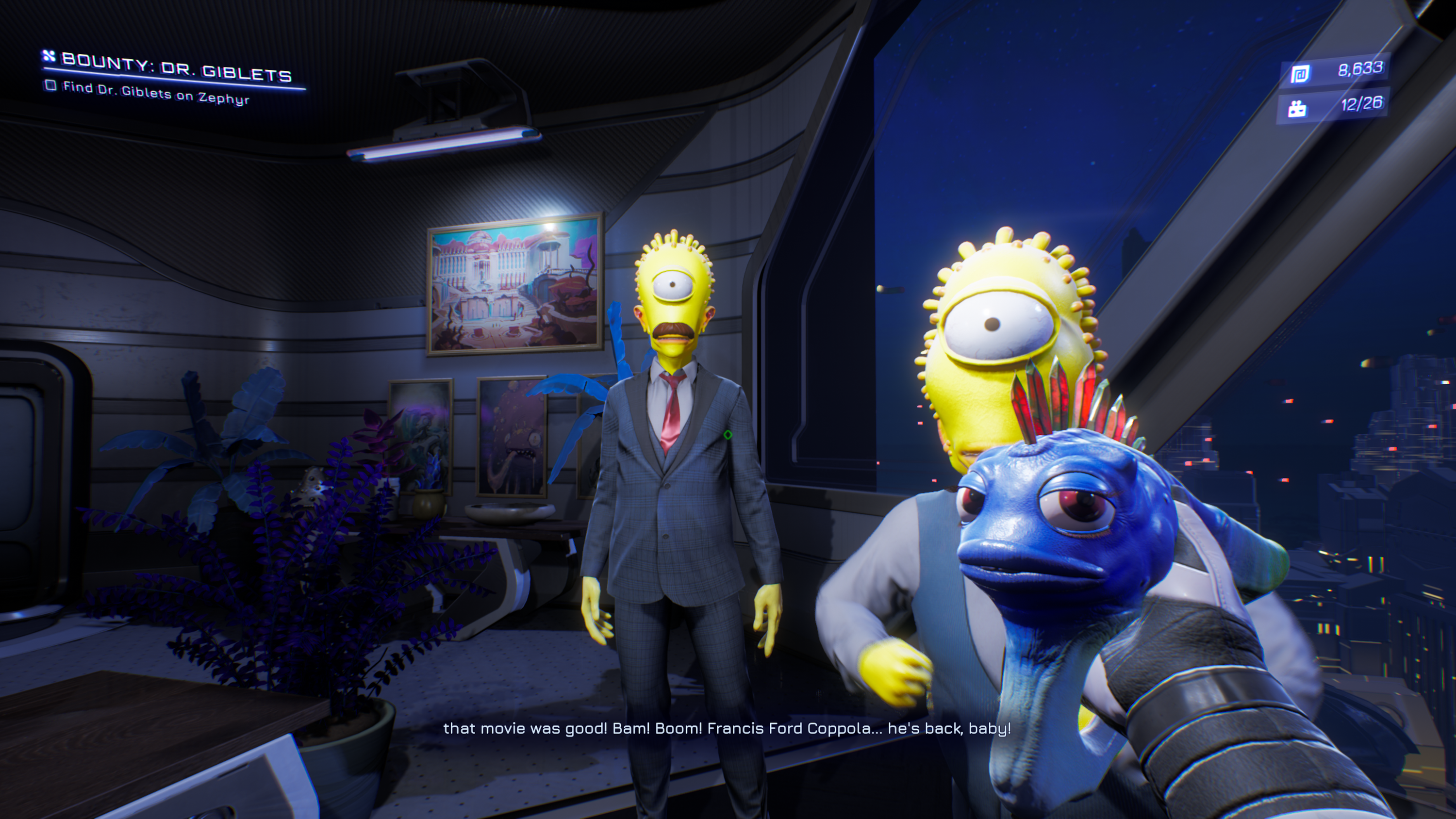 Между выполнением заданий игроки могут побродить по инопланетному мегаполису и пособирать сундуки с кредитами на покупку улучшений. Чтобы такие прогулки не утомляли, команда Ройланда решила немного их разнообразить возможностью пообщаться с горожанами, но вышло как всегда.