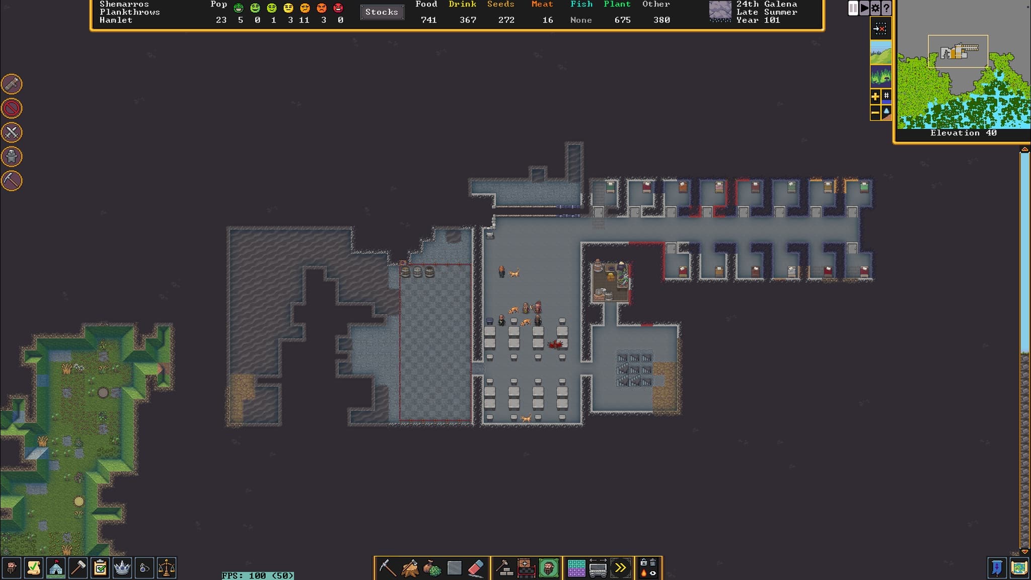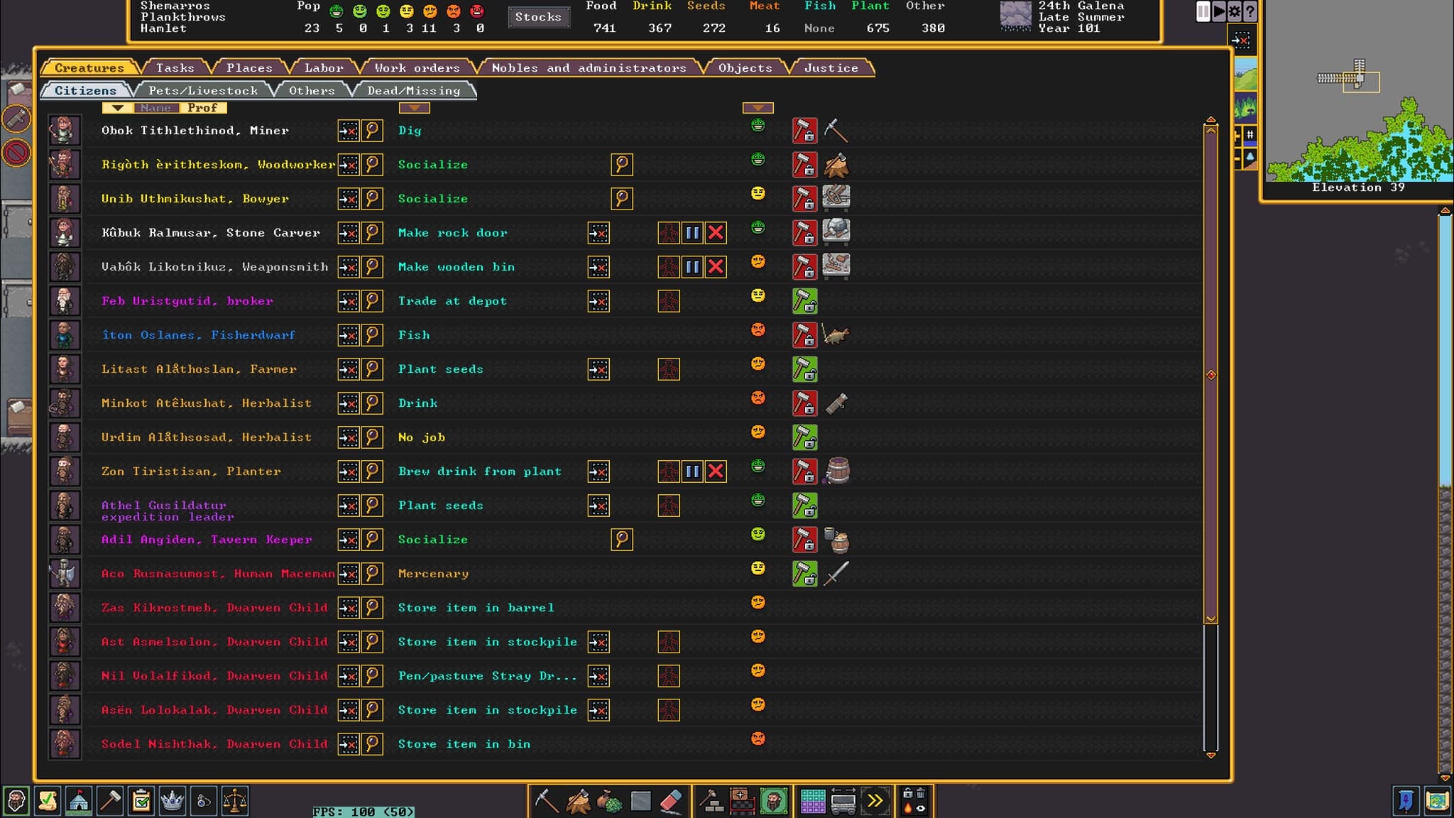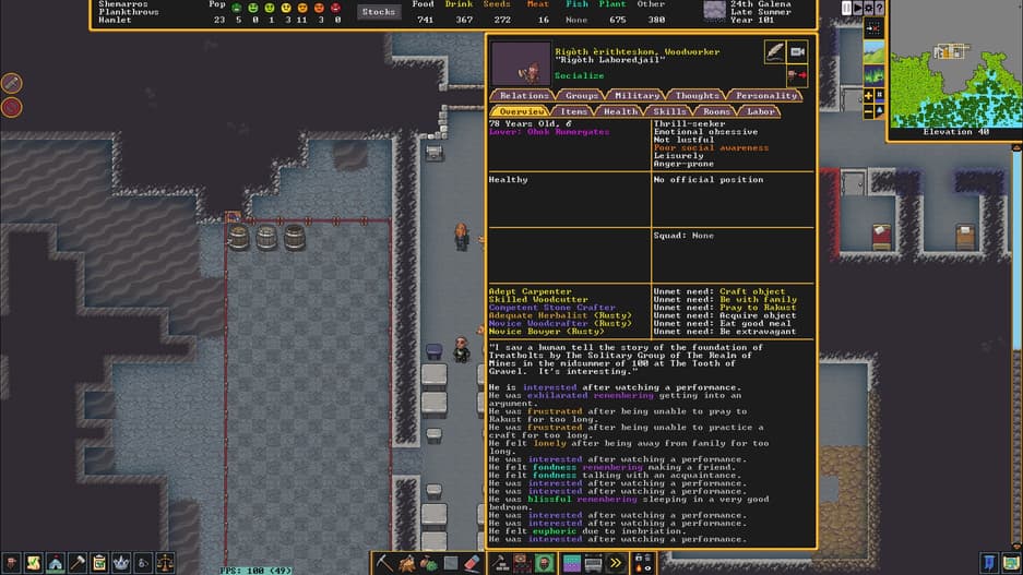 И ещё важный нюанс. В Dwarf Fortress много текста на английском, причём важного текста, дающего понимание происходящего. В сети есть неидеальные, но приемлемые способы перевода на русский, над которым продолжается работа.