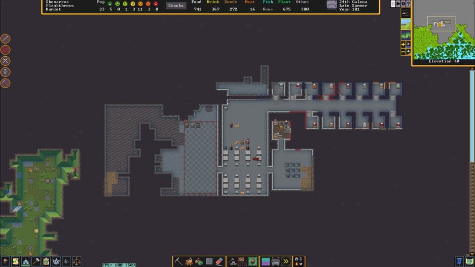 Dwarf Fortress – симулятор управления колонией с непрямым управлением и «рогалик» с моделированием фэнтезийного мира. Целого мира, а не его части. После выставления первых настроек формируется не только ландшафт, климат и нации, но и геологические и культурные особенности, история, мифы и легенды. Каждый игрок получает уникальную вселенную. Да, с собственными правилами, но подготовленную специально для него. Разработчики продумывали и продолжают работать над каждым аспектом существования крепости, от потребностей и желаний одного дварфа до всего мира.