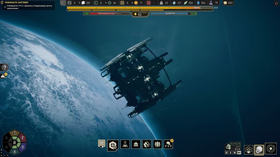 Причём сложность Ixion – это её слабость, так как возникающие проблемы больше раздражают. Это не вызов, а отсутствие автоматизации рутинных механик и нагромождение мелочей. Да, во всех тонкостях можно разобрать и кропотливо следовать к победе. Но игра не даёт передышки и старается постоянно давить, а затягивание выполнения миссий и конечность ресурсов приведёт к перезагрузкам. Поэтому даже терпеливый пользователь в какой-то момент может махнуть рукой и сказать: «Я пас!»