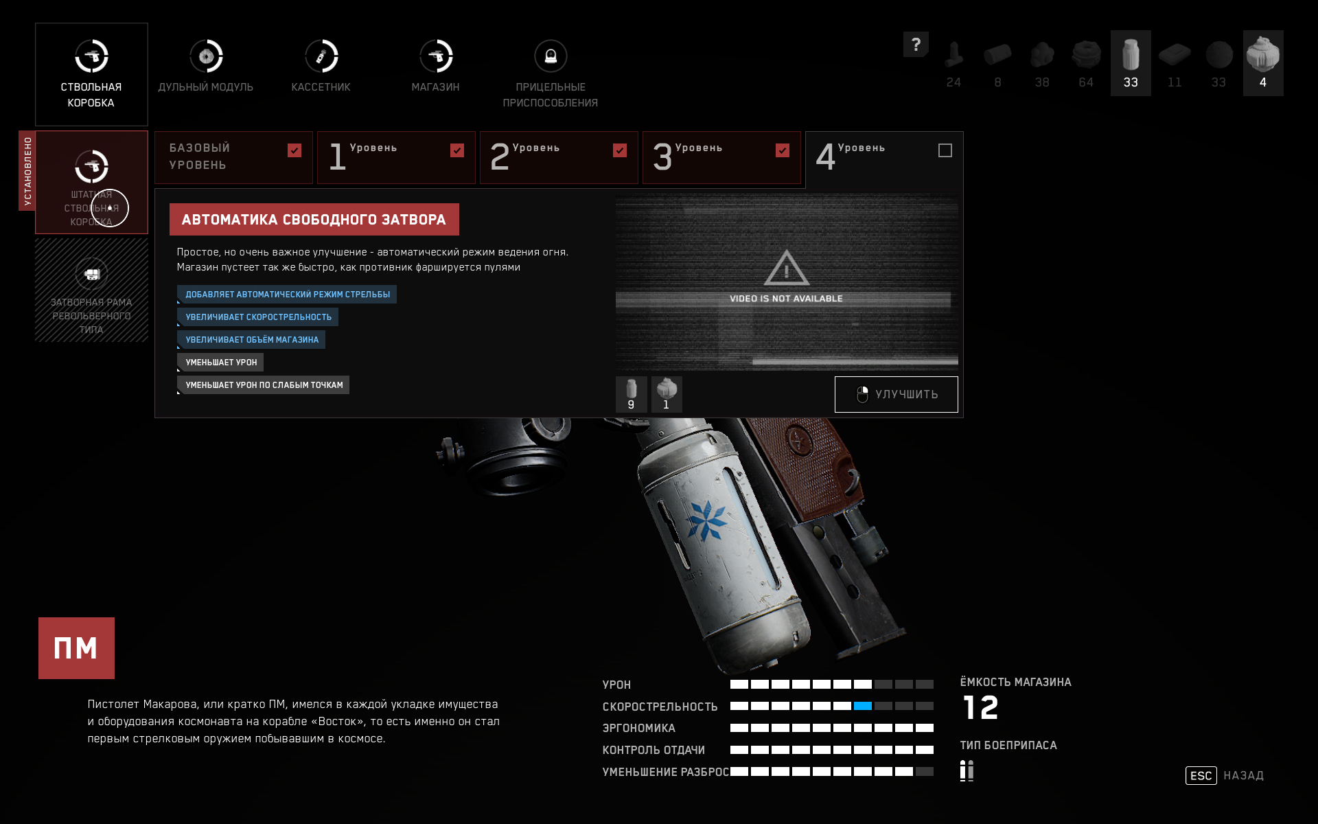 Сочетаний апгрейдов у каждого оружия, наверное, с десяток. Пара видов стволов или лезвий, пара прикладов или ручек, тройка типов прицелов и ствольных коробок, а также несколько видов разгонного элемента для электрического оружия — сочетания каждого элемента дают свой эффект.
