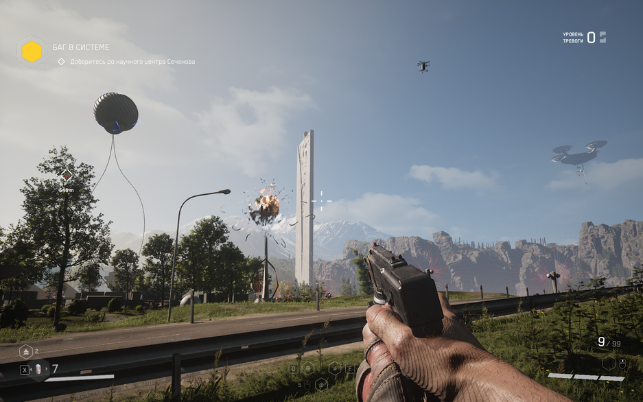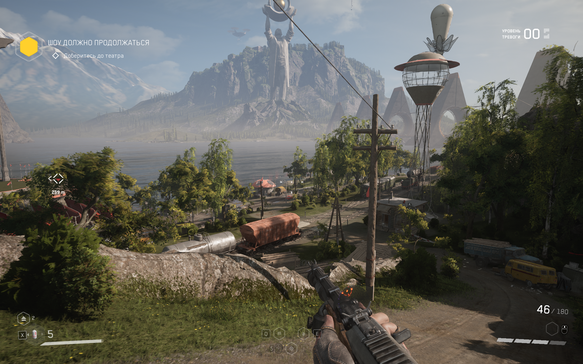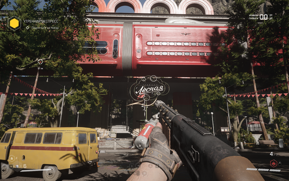 Детализация мира, дизайн деревушек и секретных комплексов, да и общее графическое исполнение Atomic Heart взрывает мозг. Никак не ожидаешь от российского геймдева, пусть и спонсированного крупными компаниями, такого исполнения.