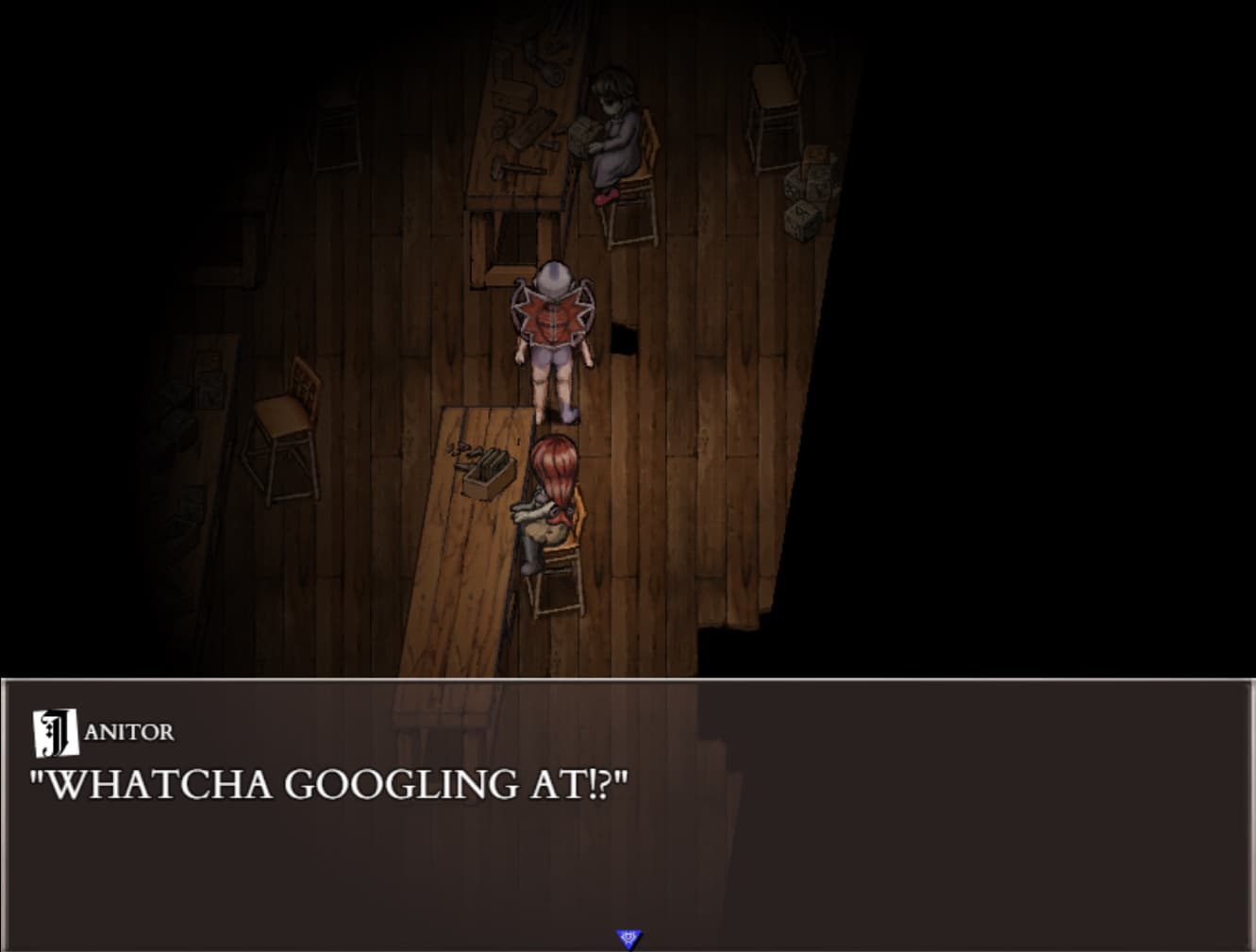 В новых локациях появляются сообщения, что «здесь небезопасно», «здесь кто-то есть». Красочно комментируются ваши действия, вроде выглядывания в окно или осмотра предметов. После каждого отдыха день фестиваля становится все ближе. А вместе с этим ухудшается и обстановка.