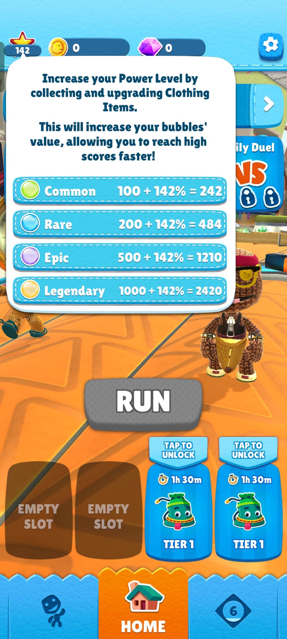 В ходе каждого забега Сэкбой собирает звездочки. Чем больше звезд за забег удалось собрать, тем больше очков получит игрок. Однако стоимость собираемых звездочек зависит от уровня прокачки игрока, который увеличивается за количество обликов в коллекции и их уровня прокачки. Причем в зачет идет не только облик, полюбившийся игроку, а суммарный рейтинг всей коллекции. Вот и выходит так, что чем больше лутбоксов откроет игрок, тем больше будет его рейтинг и тем выше будет его результат на беговой дорожке.