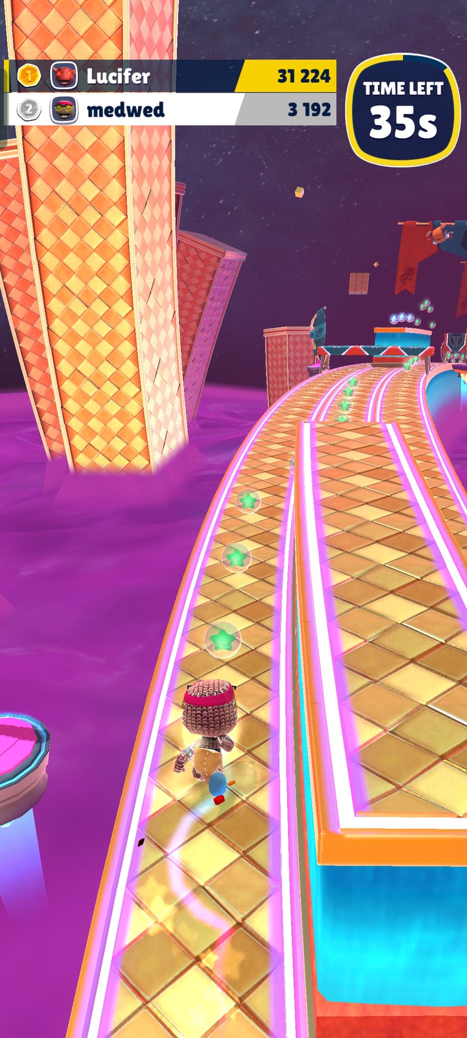 Но ладно бы геймплей получился бы не хуже, чем у конкурентов. При внешней схожести, игры ощущаются иначе. Динамика и легкость в управлении героем, которые в Subway Surfers полировались 10 лет, в Ultimate Sackboy отсутствуют. Вместо удовольствия от преодоления препятствий и желания не останавливаться, ощущение такое, как будто сам бежишь 100-метровку на уроках физкультуры. Не таких ощущений ждут от мобильных игр.