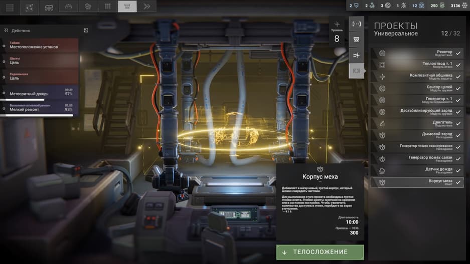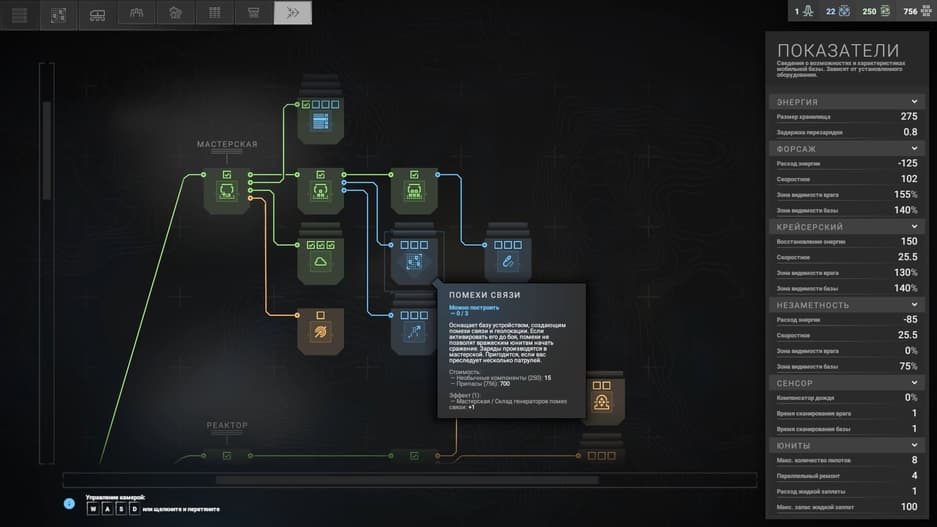 Мобильная база оснащена Мастерской, платформой для «печати» комплектующих. После ряда улучшений здесь можно создавать первоклассные предметы, но актуален раздел на поздних этапах, так как многое можно собрать с неприятеля.