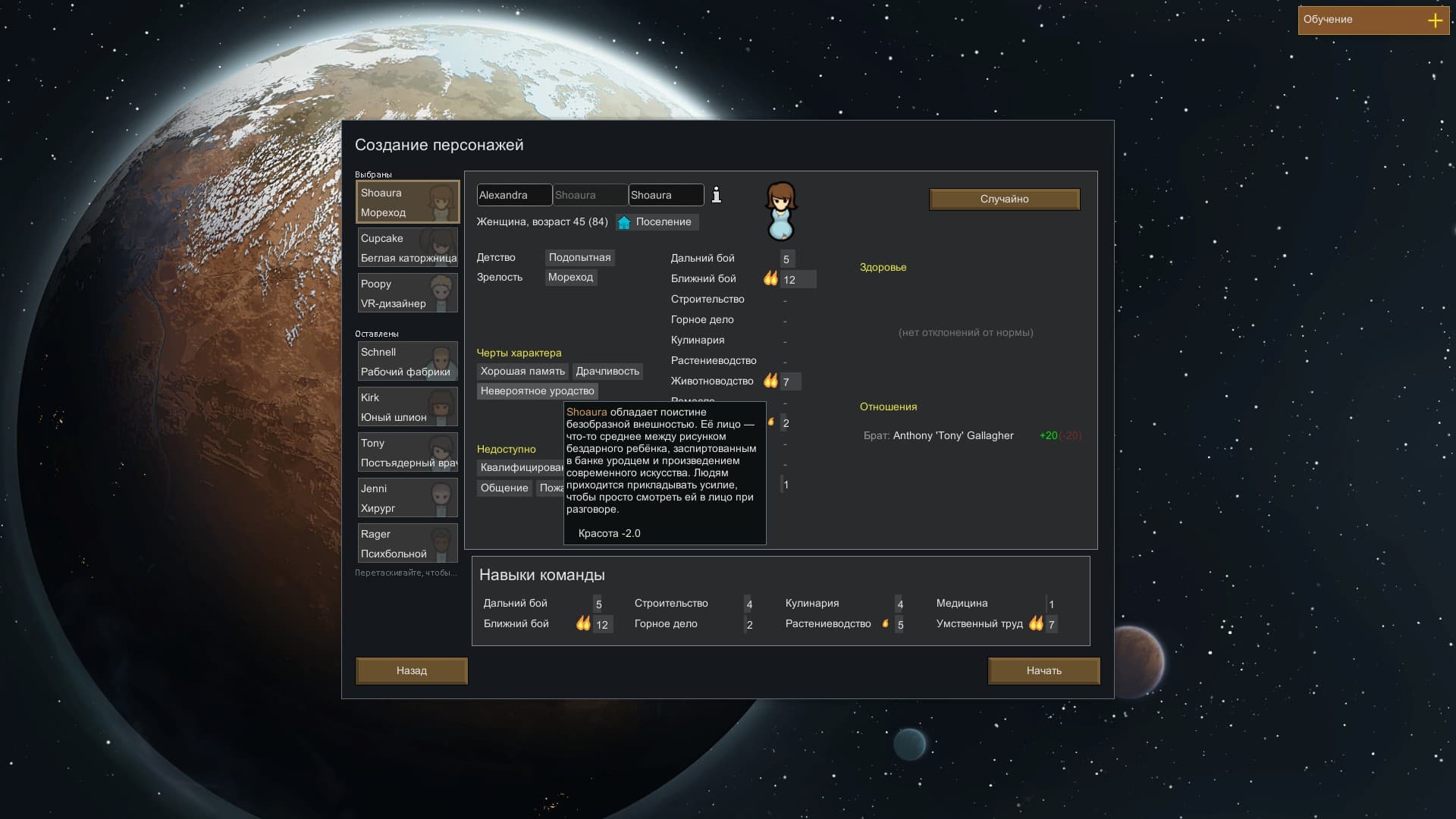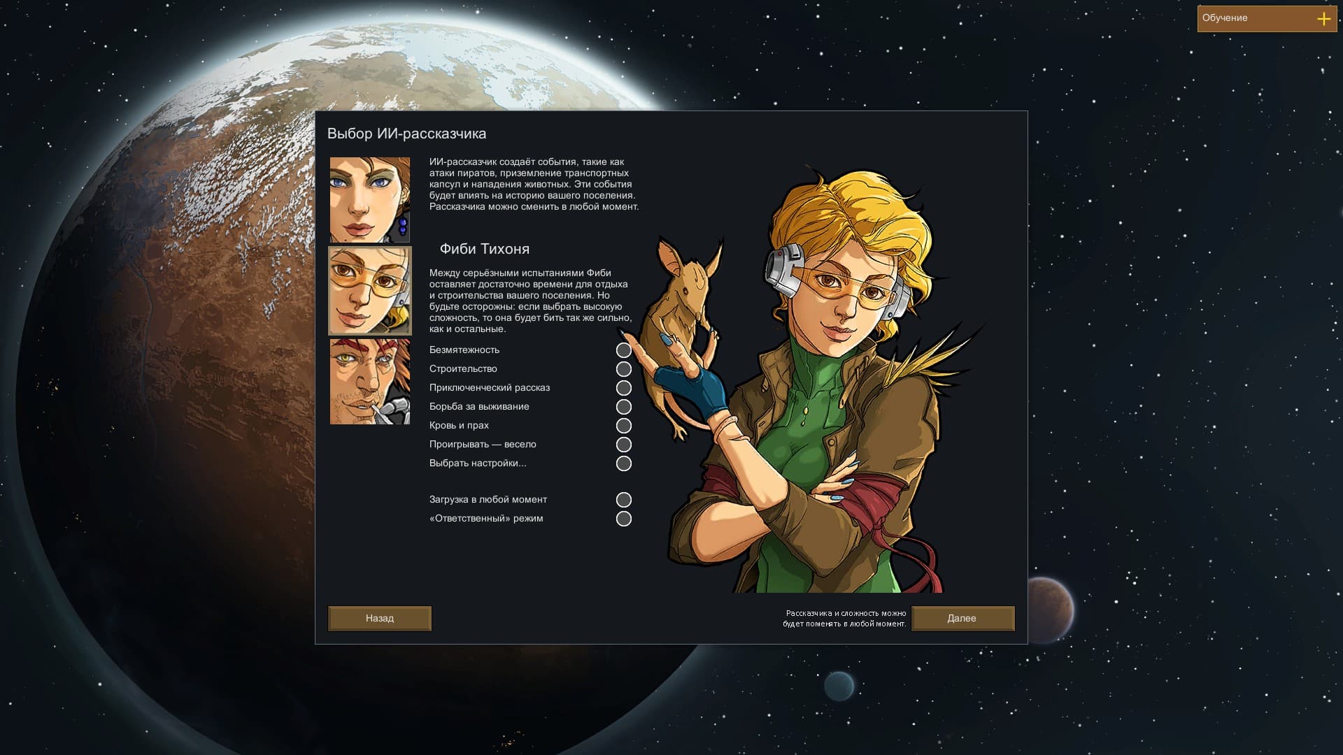 От этого выбора зависят начальные технологии и количество подконтрольных колонистов.