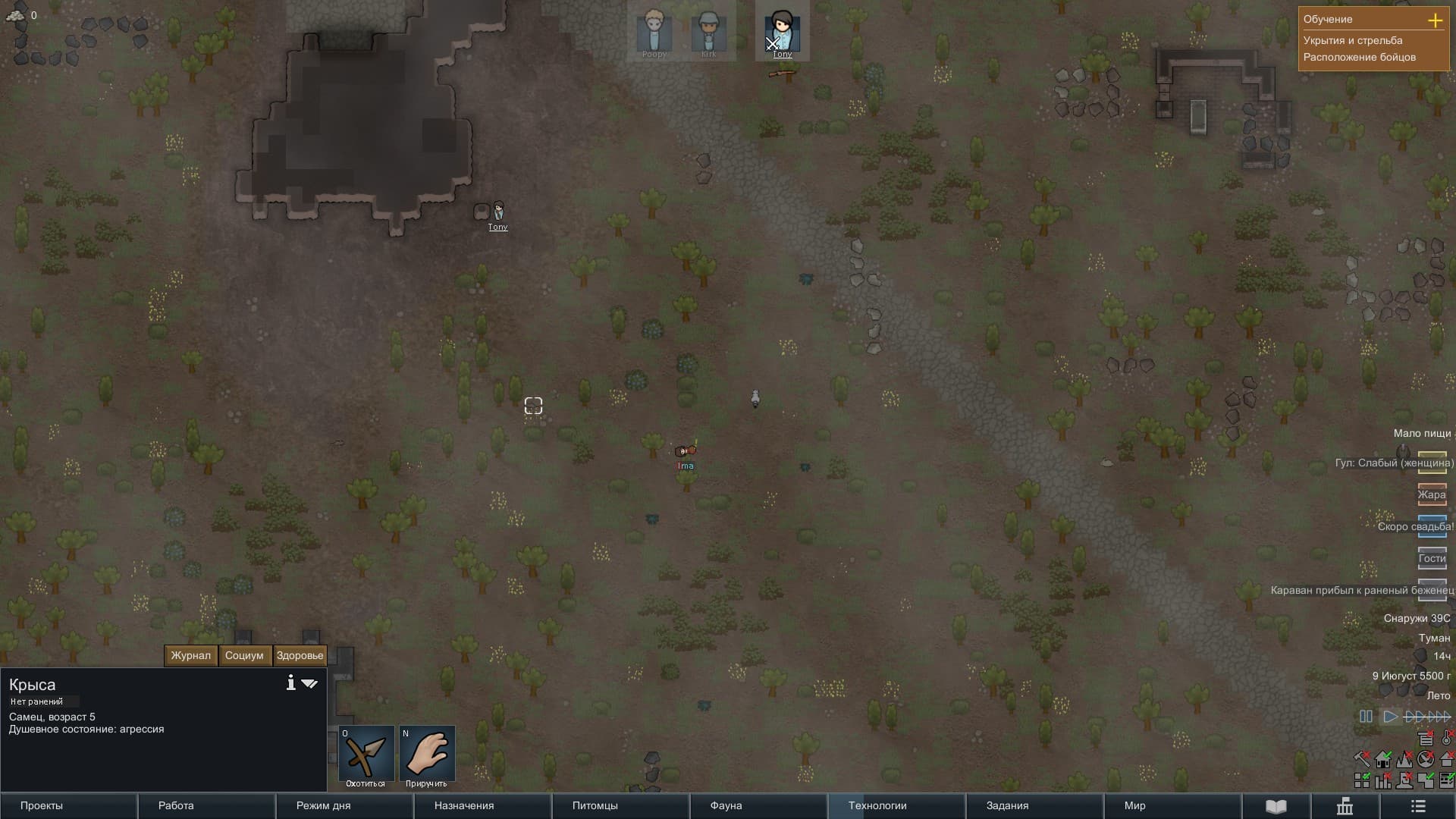 У животных тоже есть особенности. Они имеют свойство сходить с ума и атаковать всех на своем пути — одна белка легко доставит больше бед, чем головорез с дубинкой. Периодически животные будут совершать набеги, во время которых нужно прятаться за крепкими стенами.