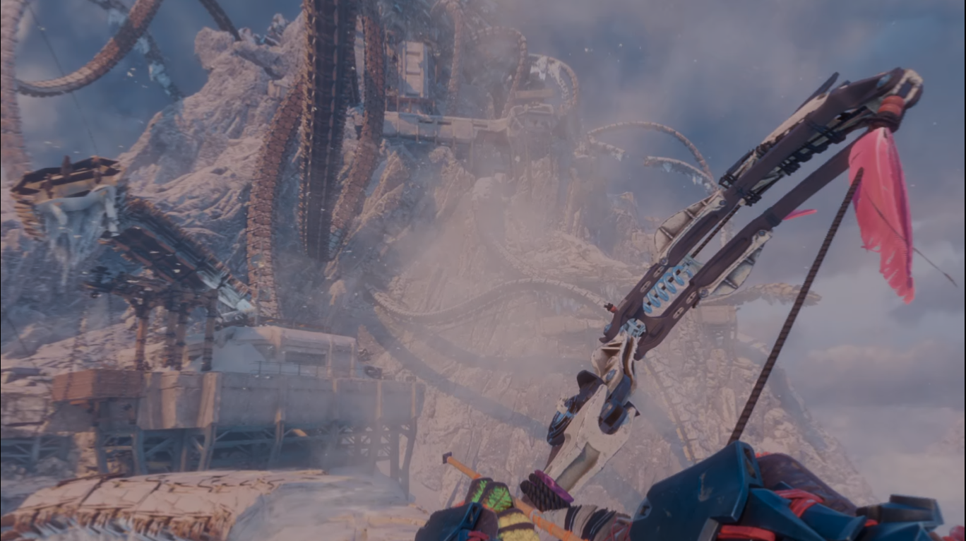 Если коротко описать Horizon Call of the Mountain, получится «симулятор скалолаза с комплексом неопределенности». Линейное приключение, где основа игровой механики — альпинизм, и которое легко порадует продолжительностью. На прохождение понадобится 7-8 часов. И львиную долю этого времени игрок будет лазать по скалам, постройкам, ржавым роботам, веревкам и съезжать на канате, преодолевая пропасти. В перерывах надо будет стрелять из лука по скрытым мишеням, чтобы хоть как-то разнообразить происходящее. Собирать ресурсы для создания стрел и поедать яблочки, восполняющие здоровье.