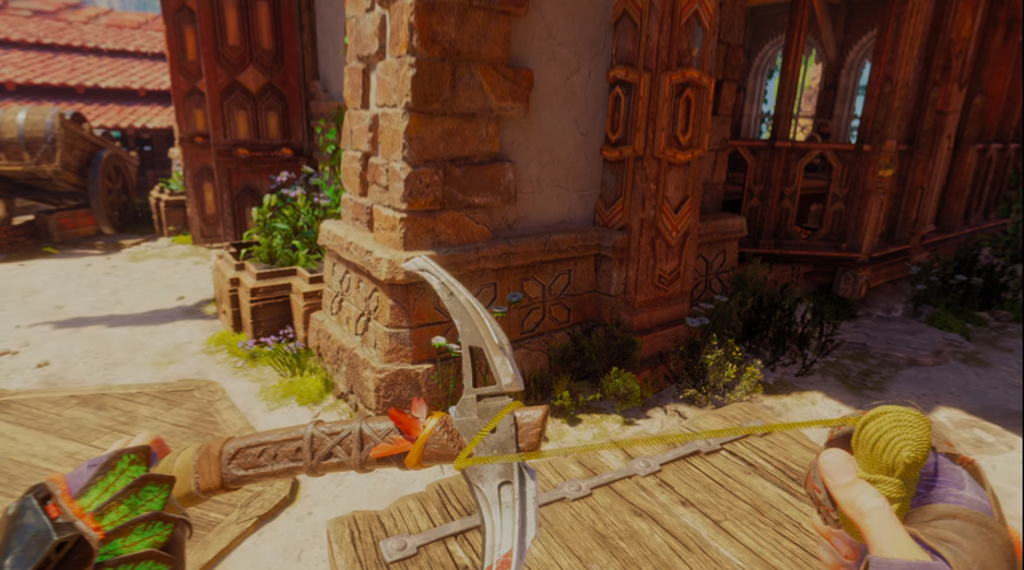 Как уже было сказано выше, основное игровое время игрок будет заниматься альпинизмом — это главный механизм преодолевания расстояния в этой игре. С продвижением по сюжету, постепенно игроку будут давать новые инструменты для преодоления тех или иных препятствий. Кирки, крюк-кошка, гарпуны с канатами для преодоления пропастей. Каждый инструмент собирается вручную, и сделано это, как и в случае со стрелами, просто и увлекательно.