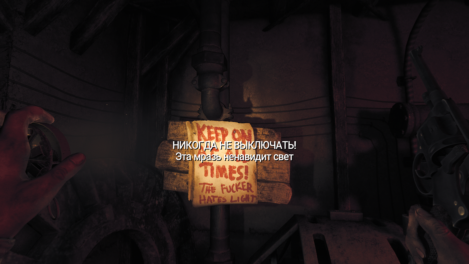 К слову, об упомянутом выше револьвере. The Bunker тут подсмотрела идеи у Alien Isolation от Creative Assembly: пули не берут монстра, но зато заставляют его возмущенно рычать. Пока чудовище ругается, у героя появляется время, чтобы ретироваться или придумать иной способ уберечься от когтей жестокой твари — скрывшись в безопасной комнате. Не забывайте только закрывать за собой дверь, ведь зверюга The Bunker не уважает чужую приватность, как это делал Мистер Икс в той же Resident Evil 2. Револьвер также ужасно долго перезаряжать: нужно держать барабан открытым и вгонять каждую пулю туда поочередно.