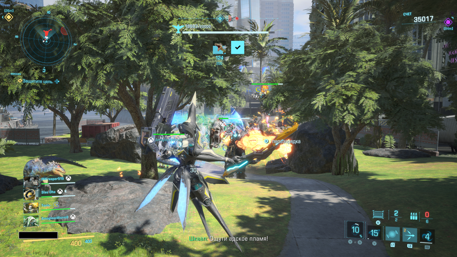 Сильной стороной Exoprimal является PvE, и сразу видно, что усилия разработчиков были сосредоточены на этом режиме, а PvP был добавлен в последний момент. Биться с динозаврами весело, если играть в сплоченной команде. Но когда на арене появляются экзокостюмы других пилотов, то на экране начинает твориться вакханалия. Можно, конечно, играть только в PvP-миссии, но тогда проект надоест еще быстрей, потому число таких заданий сильно ограничено. Получаем парадоксальную ситуацию, когда больше всего разнообразия в Exoprimal предлагает в самых несбалансированных режимах.
