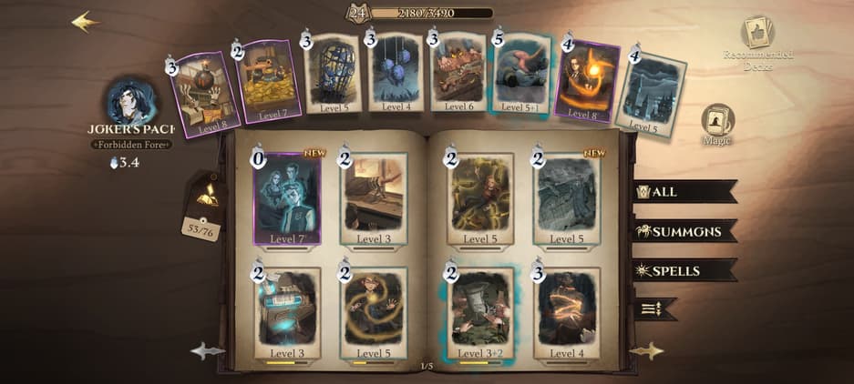 Помимо карт заклинаний и призыва существ, игроку доступны: три карты помощников; боевая химия или зелья; эхо великих волшебников, накладывающие на колоду усиления. Кроме того, во время боя, игроку доступен десяток карт смены позиции.