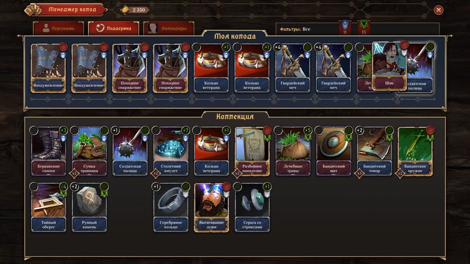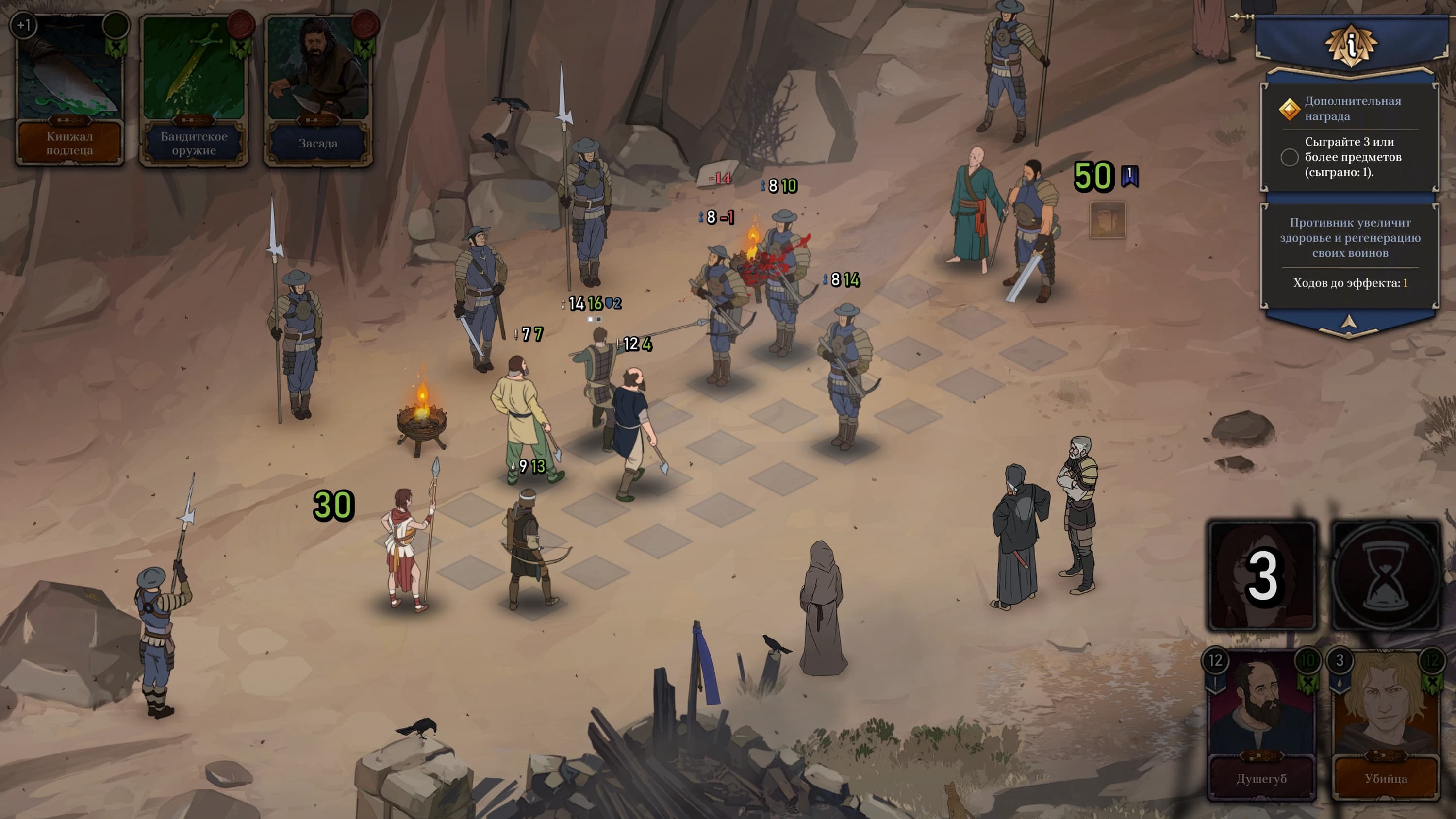 Но, понятно, что повествование в The Way — только приятная изюминка на фоне сражений-головоломок. Перед каждым игрок должен составить колоду из десяти карт воинов и десяти предметов или заклинаний. Почему колода такая тонкая? А это исключает главный бич колодостроительных игры — удачу.