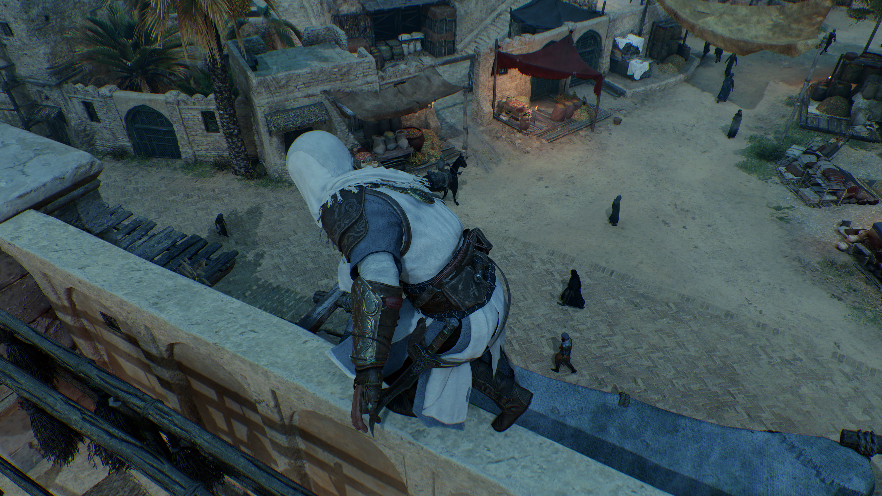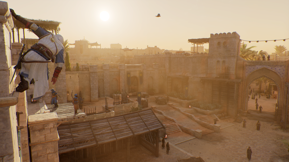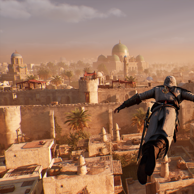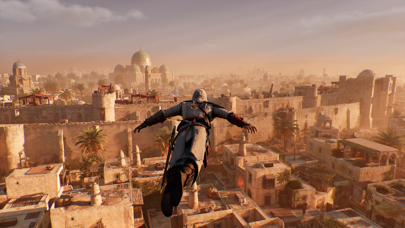 Территории в «Мираже» стали намного меньше, чем в RPG-трилогии, но внушают — город Багдад и его окрестности пробежать за 15 минут не выйдет. При этом есть и городки помельче, которые стоят поодаль от славного восточного града. И если окрестности исследовать нет никакого интереса — обычно это поездка на верблюде на дальнюю метку на карте, — то вот бегать по крышам, чёрт побери, приятно.