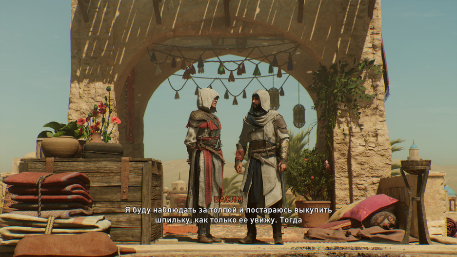 Вся система снаряжения в Mirage тоже является отростком Valhalla и не нужна. Игроку говорят: «Ты можешь прокачивать оружие или одежды Басима, но, если не хочешь — не надо». Бонусы настолько мизерные или работают на облегчение стелса, что иногда жалеешь, что не оставил всё как было — играть скрытно со стандартными одеждами и оружием куда интереснее, чем с улучшенными.