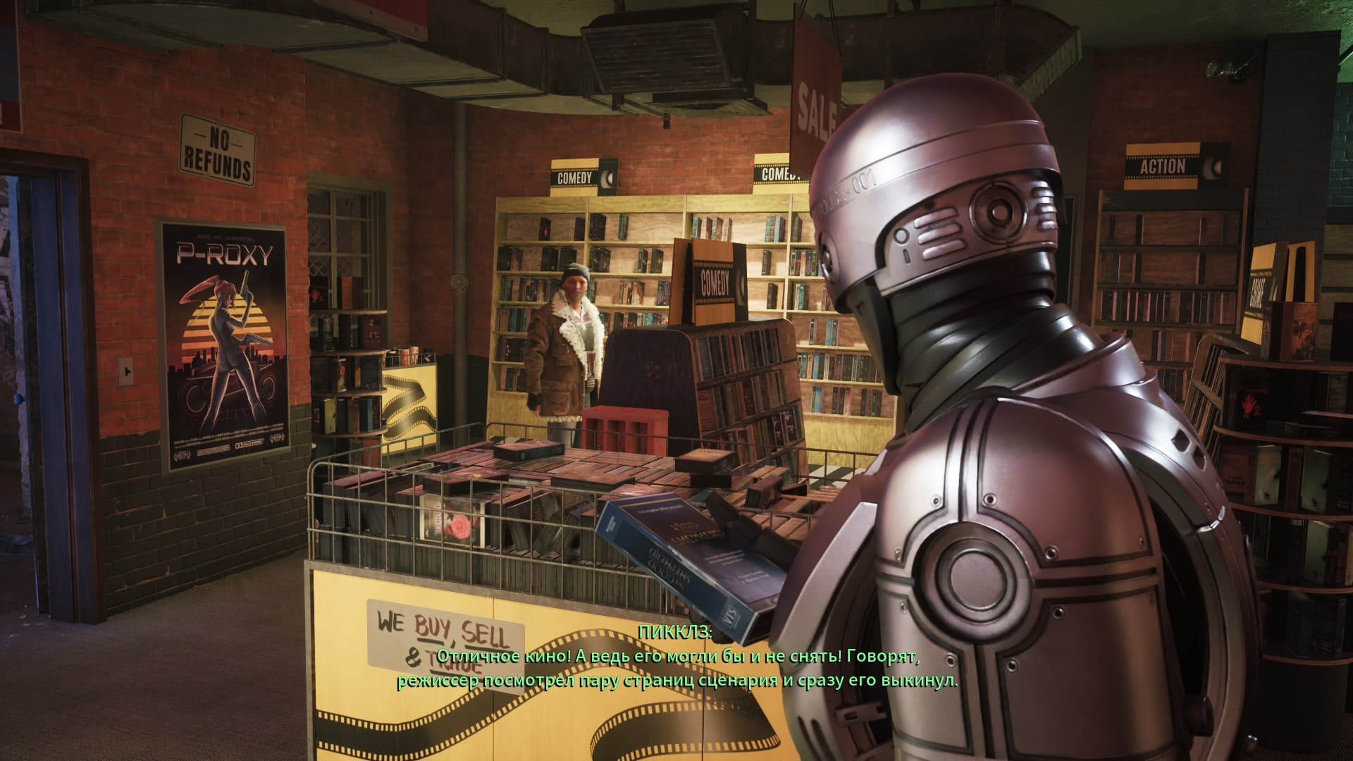 На зачистку отбросов прибывает Робокоп. Он выглядит и ощущается прямо как версия из фильма. Способствует этому и озвучка от Питера Уэллера — актёра, сыгравшего легендарного Алекса Мёрфи. С его подачи Робокоп звучит до брутального прямолинейным, а такой стиль делает диалоги атмосфернее и напоминает шедевральную подачу Джей-Си Дентона из Deus Ex.