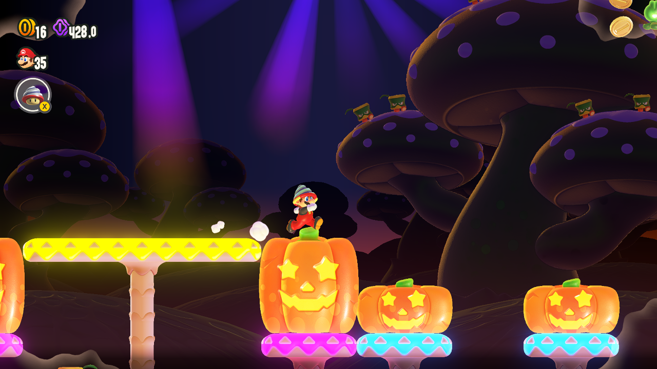 Я не совру, если скажу, что в Mario Wonder уровни не повторяют друг друга. Каждая новая механика или возможность показана в отдельном сегменте миров. И больше она не используется нигде, кроме бонусных отрезков или испытаний.