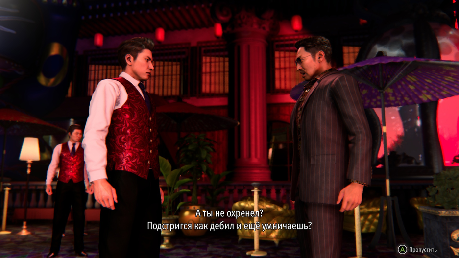 В остальном прокачка похожа на ту, что было в Yakuza 0 — кроме очков Акамэ, главный герой требует внушительных денежных инвестиций. Их мы получаем за прохождение заданий, прокачку сети или выбиваем из врагов, шныряющих в игровом мире. Прокачивать можно как обычные характеристики Кирю — здоровье, силу атаки, шкалу жара — так и изучать некоторые новые приёмы.
