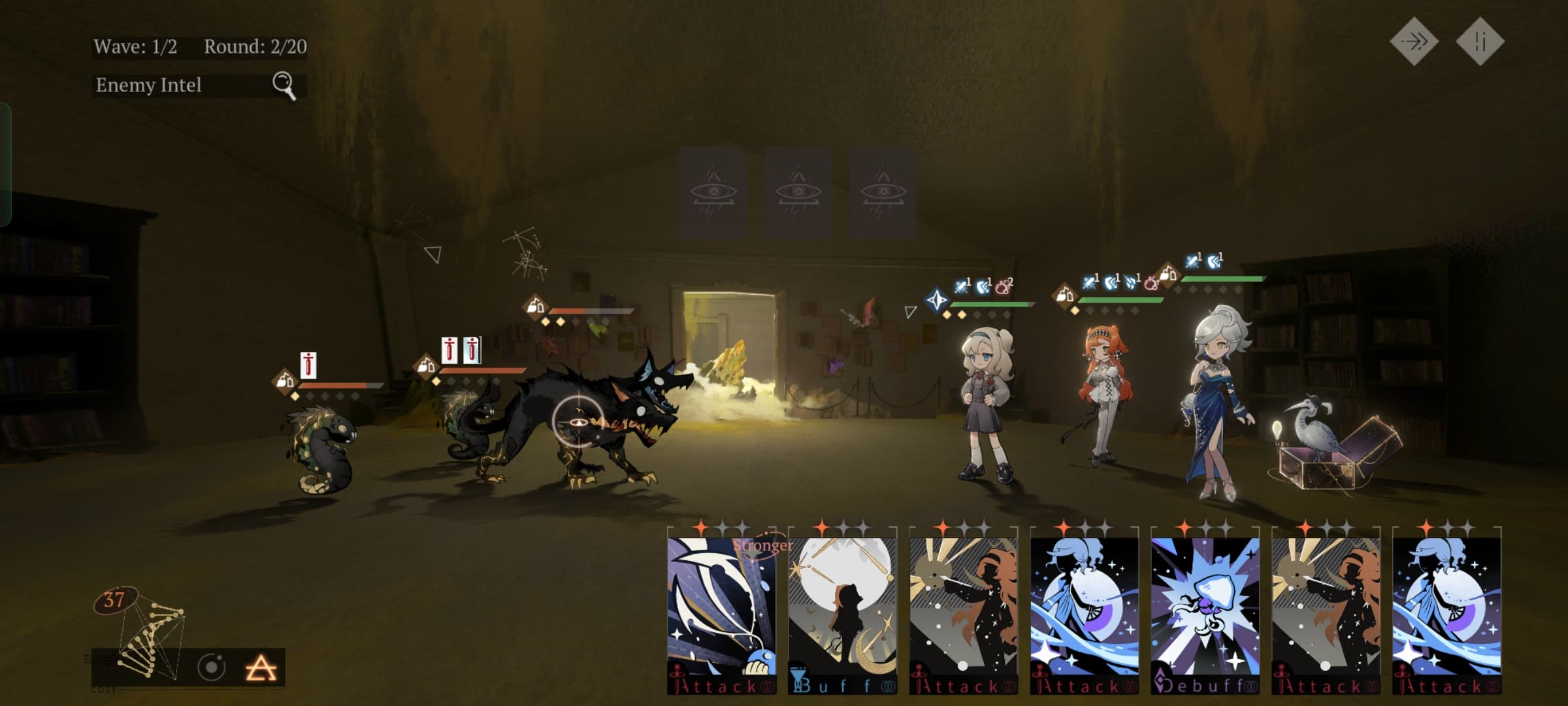 В целом сражения напоминают таковые в Honkai Star Rail, только оформленные не так красочно, а умелое использование карт персонажей роднит игру с коллекционными карточными играми (ККИ). Но, в отличие от ККИ, колода здесь ограничена.