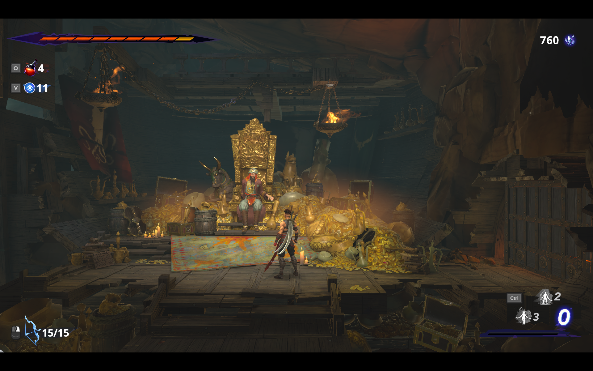 Хочется отдельно посоветовать всем пройти обучение в Пристанище — один из друзей Саргона научит его не только пользоваться базовыми навыками, но и покажет интересные возможности для комбинаций, которые делают боевую систему ещё круче. И, как я и писал в демоверсии, подобный подход к созданию боевки во многом роднит The Lost Crown с Warrior Within — не хватает разве что крови, разлетающихся на куски тел и истошных воплей врагов.