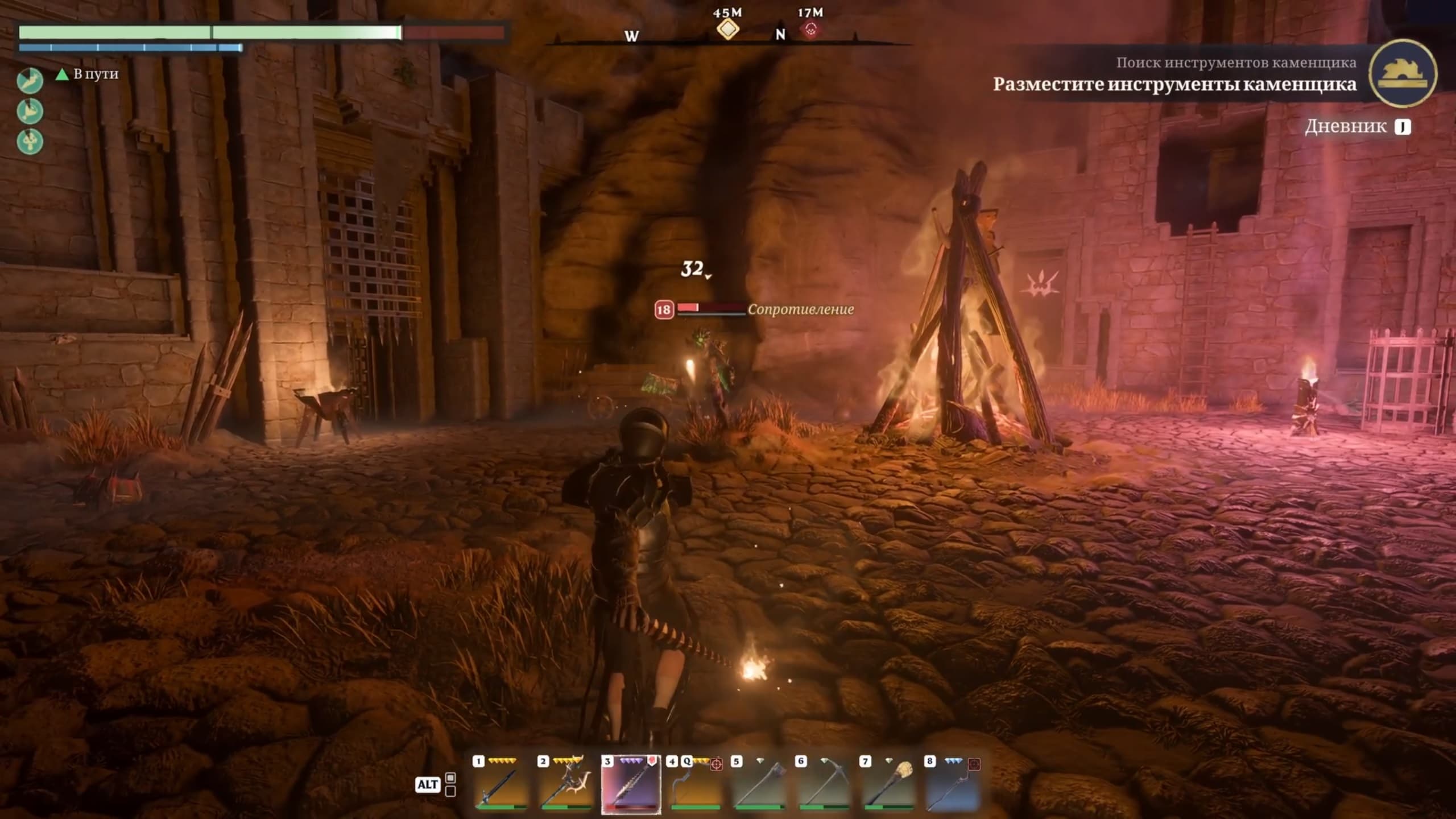 Обычно «выживалки» заставляют чувствовать дискомфорт, но Enshouded более дружелюбная – возрождение после смерти без потери оружия и экипировки, быстрые передвижения без ездовых животных, стремительные и справедливые бои с упором на аркадность, бонусы от еды. Особо стоит выделить Планер, без стеснения заимствованный из Zelda, и позволяющий мгновенно преодолевать большие расстояния с высоких Шпилей. Крюк-кошка находит меньшее применение, так как цепляется только за специальные скобы.