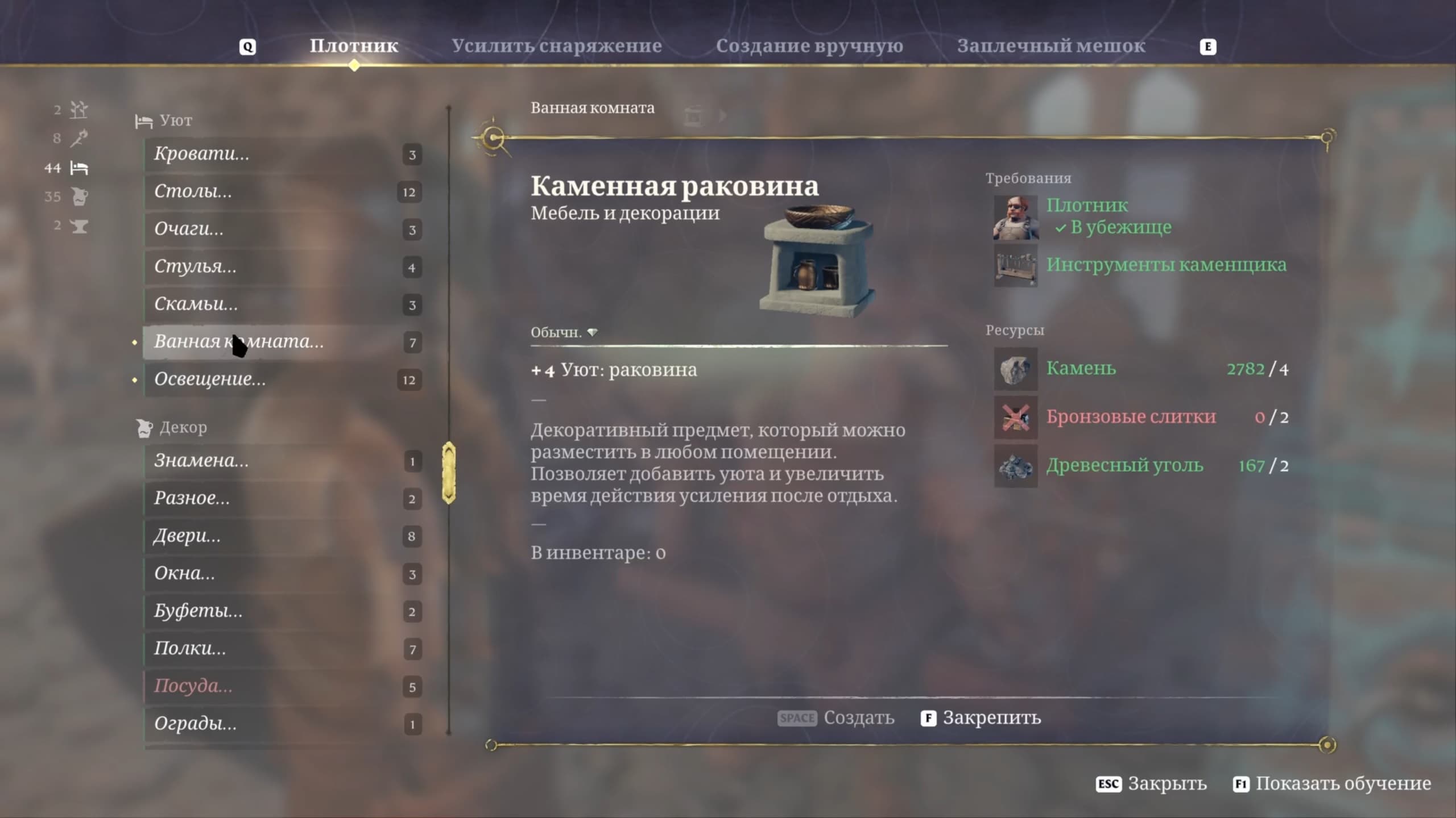 Ремесленничество реализовано с изюминкой, так как доступ к станкам и уникальным рецептам дают неигровые персонажи-духи – алхимик, крестьянка, кузнец. Они находятся в заточении и ждут своего спасителя. После освобождения и появления на базе выдают задания, предоставляющие доступ к новым инструментам, то есть служат отмычкой для нового контента.