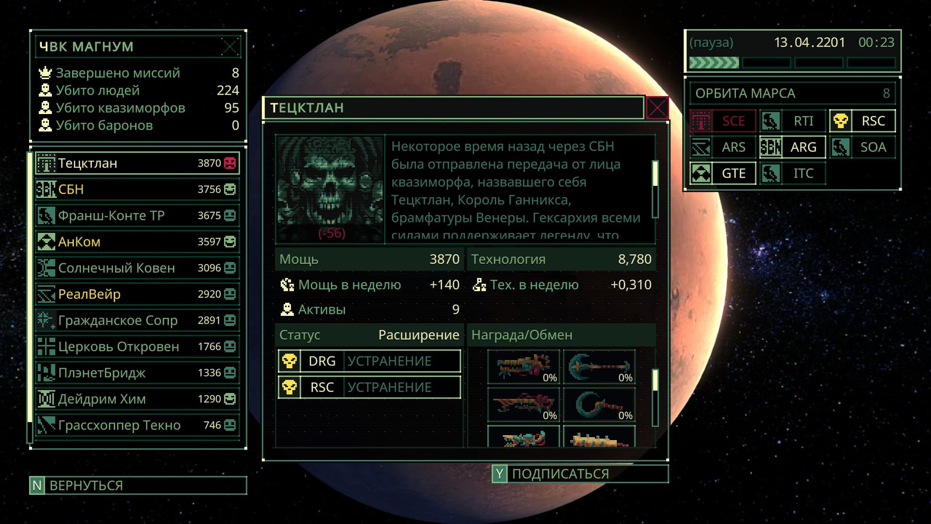 Однако у игры множество проблем, которые делают её механики неудобными. Перемещение между планетами и торговлю нужно доработать! Также стоит сделать рандом чуть менее повсеместным, и ослабить наказания за провалы. Будем надеяться, что в будущих патчах с этими проблемами разберутся, и добавят множество нового контента!