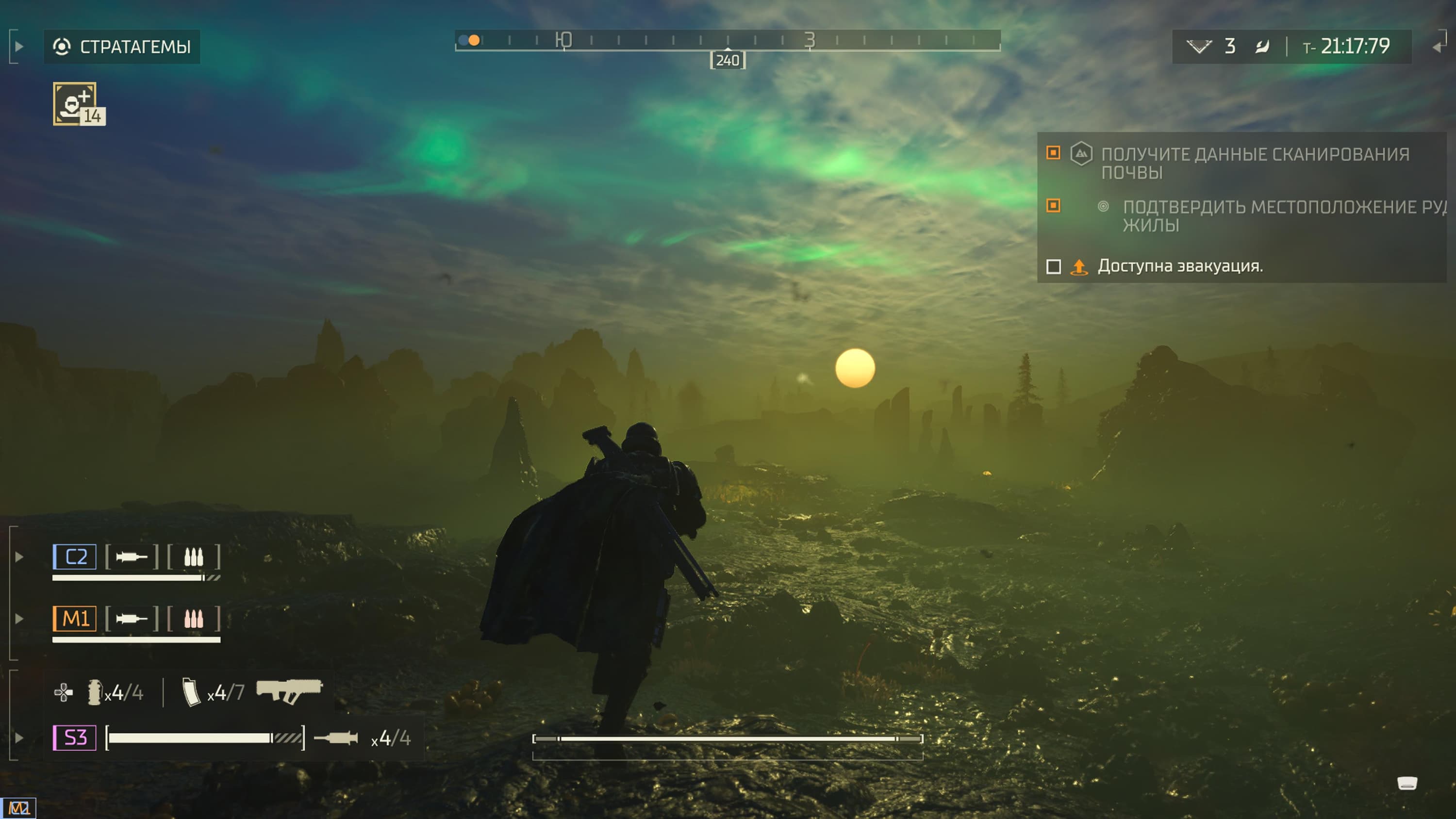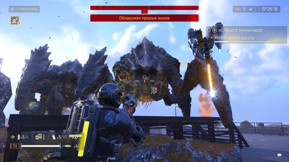 С собой на задание в бой можно взять до четырех стратагем, а активация каждой превращается в настоящую мини-игру, требующую набора определенной комбинации. В пылу сражения вполне легко ошибиться с комбинацией, и вместо авиаудара скинуть маяк SOS, но от того каждая конфронтация с противником становится более напряженной.