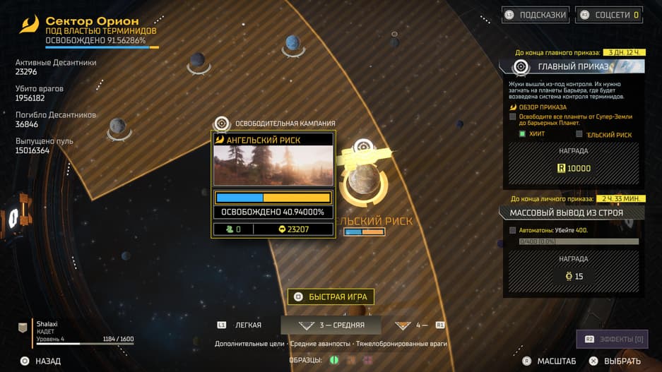 Авторы обещали реальную карту боевых действий, где можно наблюдать за количеством покоренных планет и состоянием секторов, которая будет меняться в зависимости от вклада игроков в общее дело. Это очень любопытная особенность проекта и разработчики определенно будут развивать её, предлагая различные события, которые заставят адских десантников бросать свои дела в одном секторе, и в срочном порядке лететь защищать другой. Как происходит прямо сейчас: пока игроки отбивали сектора у терминидов с момента релиза, коварные авторитарные автоматоны напали на планеты супер-землян и игрокам предстоит 12 дней защищать новые территории.