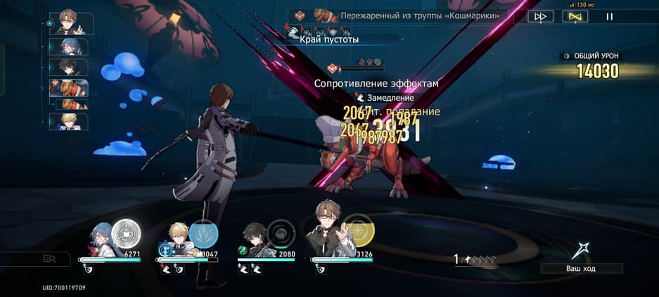 Немного расстраивает лишь боевая система. В обзоре версии 1.0 мы подробно ее описывали, здесь лишь коснемся основных моментов: бои проходят в пошаговом режиме. Очередность хода определяется характеристикой скорости персонажа. На стороне игрока до четырех бойцов, на стороне противника — до пяти. В Honkai Star Rail есть традиционное для жанра деление бойцов на стихии урона и классы (в терминологии игры «путь, которым следует персонаж»).