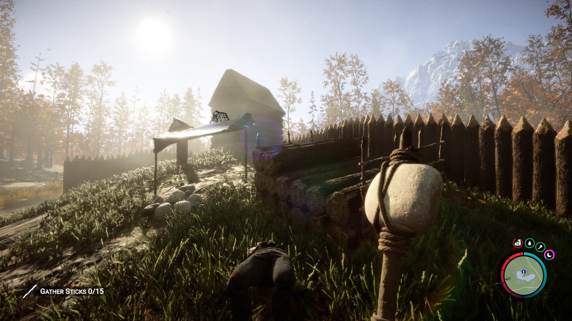 Выживание начинается со строительства базы в приглянувшемся месте. Нужно вырубать целые участки леса, чтобы построить себе сруб с частоколом. К имеющимся вариантам строительства добавились разнообразные ловушки, а также возможность провести электричество! Последнее вырабатывают солнечные панели, и нужно оно для питания лампочек и электрического забора.