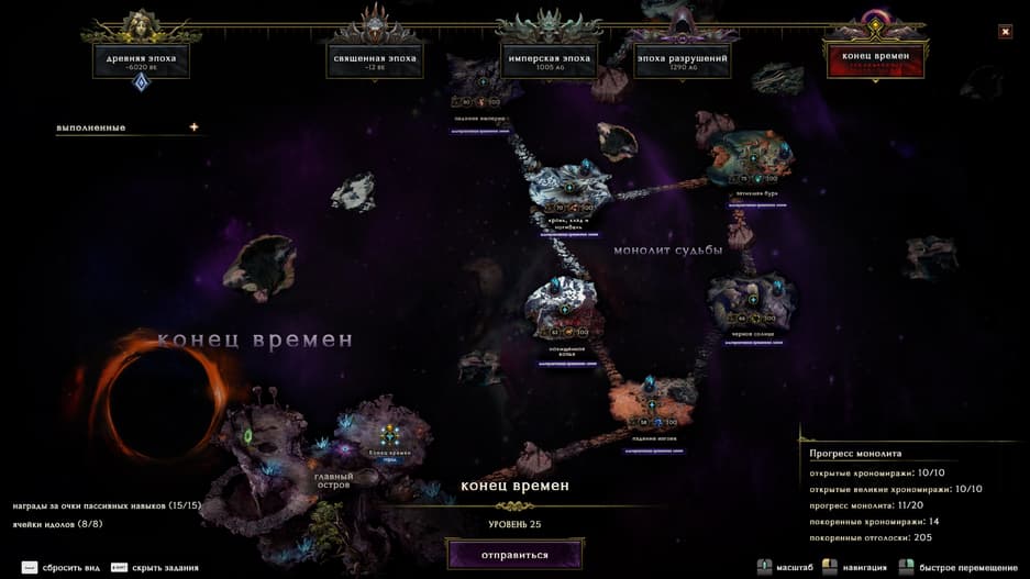 Основным развлечением станут «Монолиты судьбы» - временные разломы, которые используют сюжетную тему путешествий во времени, помещая в локации с roguelike-элементами и могущественными врагами в обмен на лучшую добычу. Монолиты откроют доступ к постоянным усилениям – «благословениям».