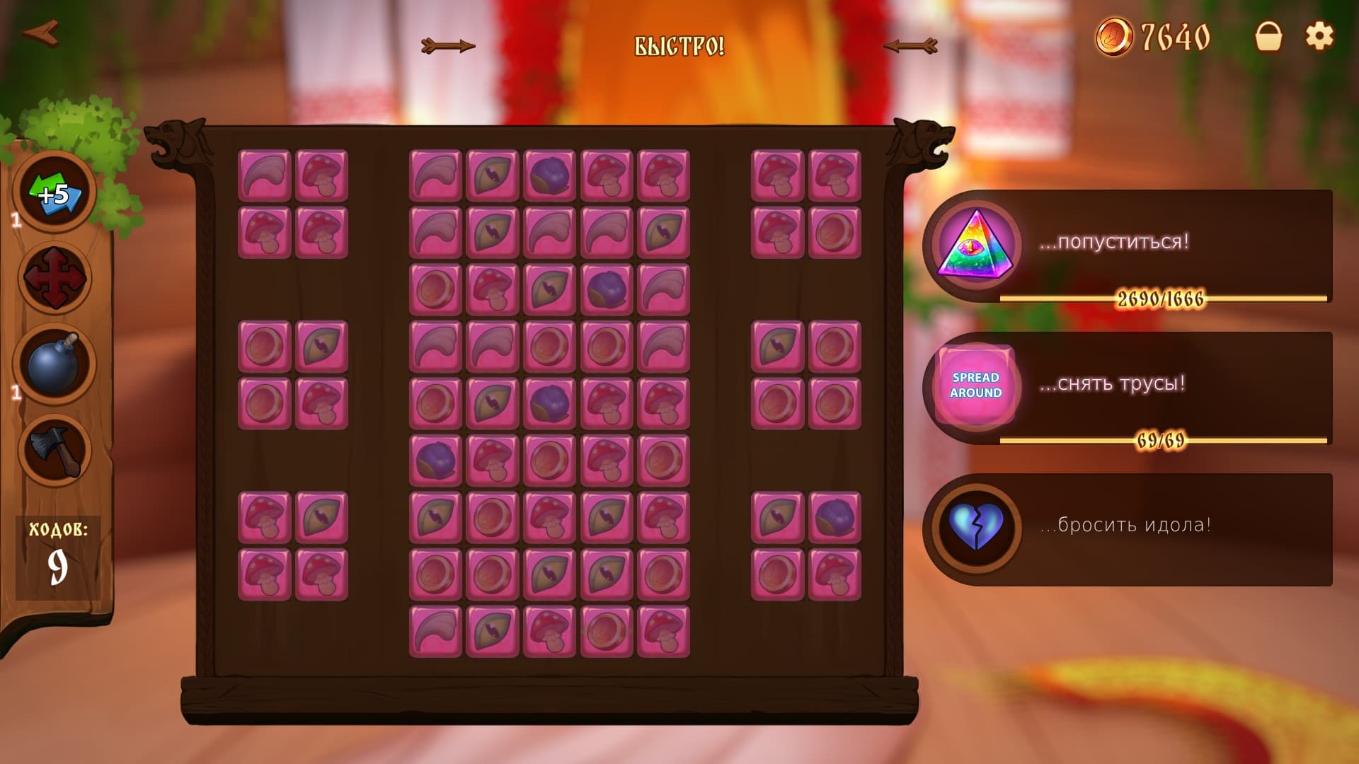 Для получения доступа к «сценам развития сюжета» нужно пройти вариацию мини-игры «три в ряд». К ней не прилагается инструкция и она вызывает недоумение: