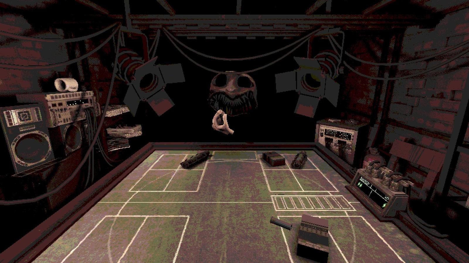Игра источает атмосферу безнадежности и грязи — начиная с серых стен и поношенного оборудования и заканчивая монотонной клубной музыкой. Да и существо с дробовиком вызывает сомнения в безопасности происходящего. Однако азарт от опасной игры перекрывает чувство самосохранения.