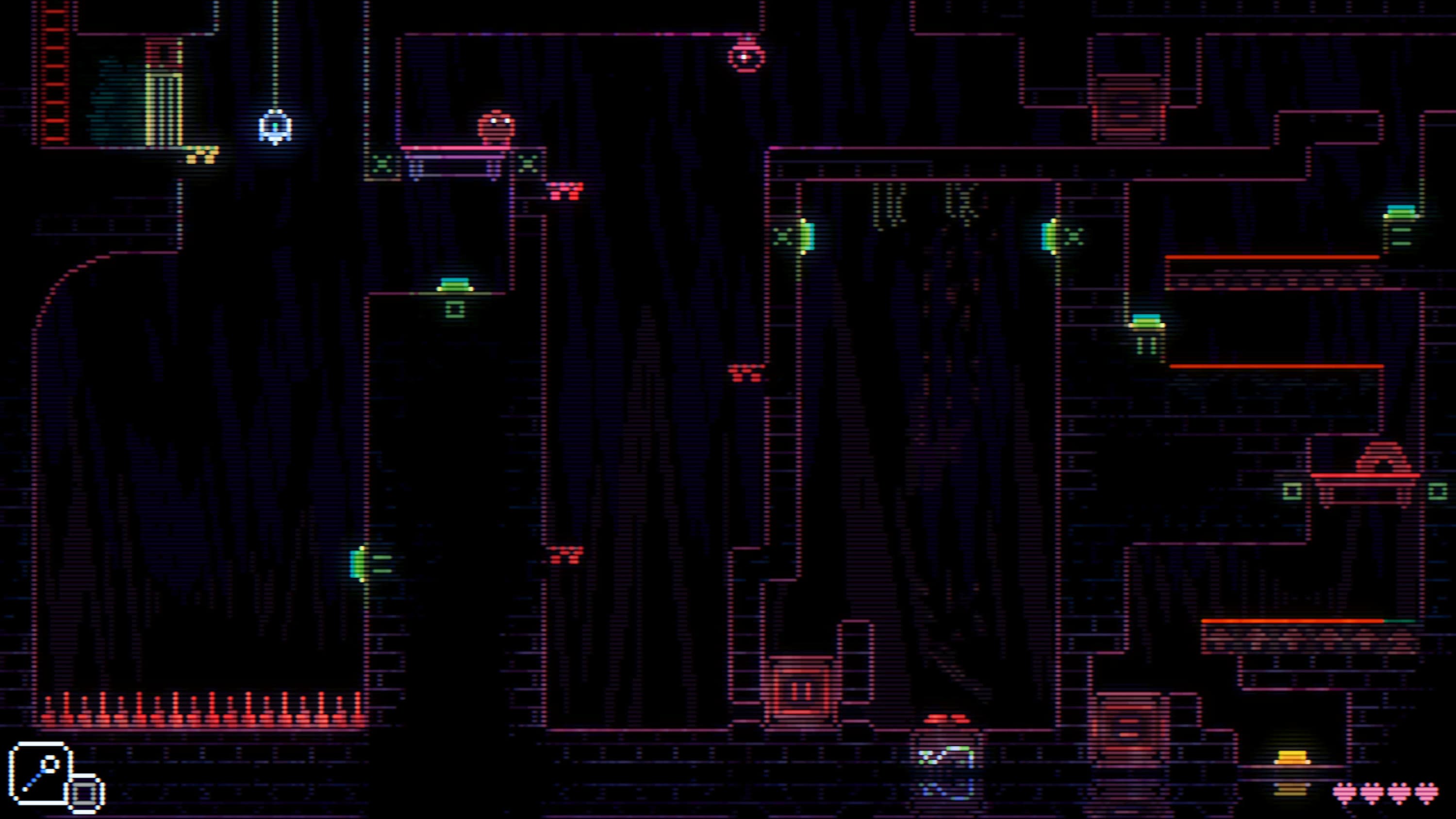 Зачастую в метроидваниях каждый новый предмет, инструмент предназначен для выполнения одной конкретной задачи. Но Animal Well приветствует изобретательность и почти каждый «гаджет» можно использовать неочевидным образом. Например, с помощью фрисби можно разрушать шипы, отвлекать собак, переключать рычаги и кнопки, а также использовать его как средство передвижения и платформу. В тоже время, инструменты можно комбинировать между собой, чтобы забираться в определённые места, даже если у вас нет конкретного предмета, позволяющего попасть туда проще и «легальней». О многих неочевидных взаимодействиях я узнал только после завершения игры, поскольку на базовом уровне её возможно пройти и не будучи Леонардо да Винчи.