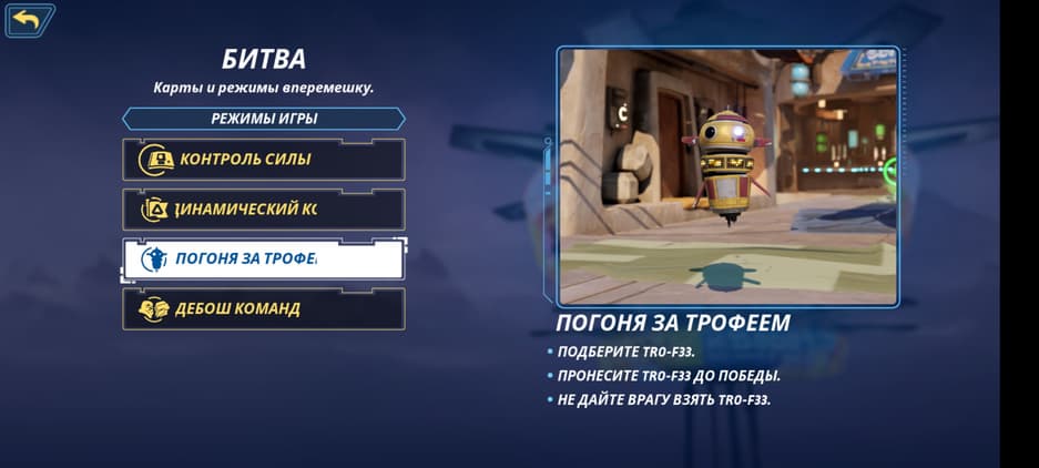 Из непосредственно игровых режимов имеем: «Контроль силы», «Динамический контроль», «Дебош команд», «Погоня за трофеем».
