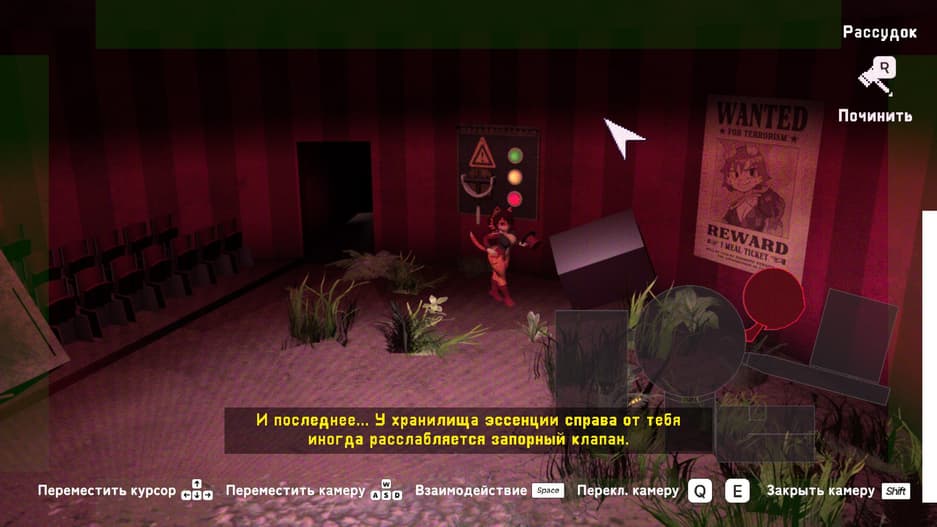 Оставленный клиентами беспорядок нужно убрать нажатием на кнопку, которая связана с одной из четырёх комнат. Иногда уборка вырубает электричество, и тогда придётся направить неповоротливого робота на починку. Периодически в один из мусорных баков залезает вредительница и обрубает доступ к комнате – её нужно найти и выкурить.