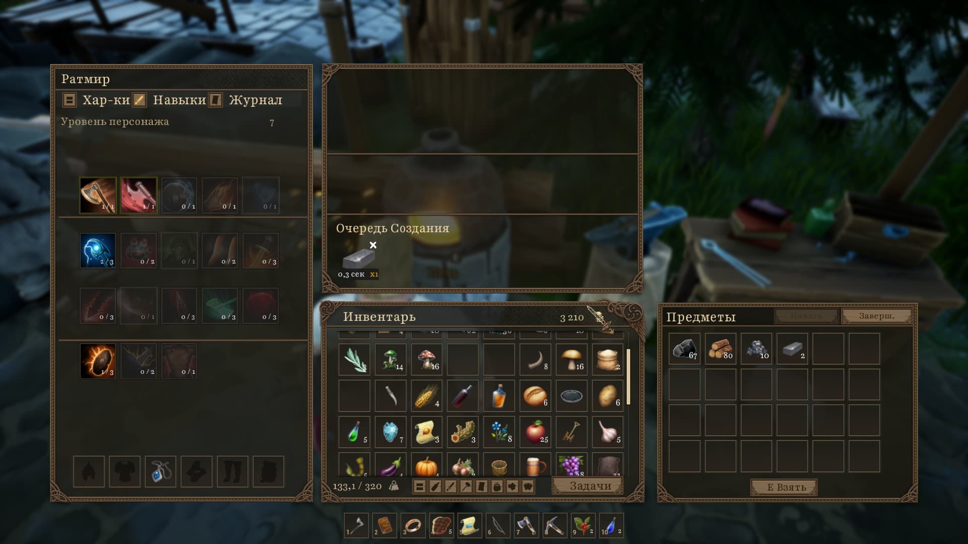 В «Древних Русах» есть разнообразный крафт, необходимый для создания экипировки и расходников: кузнечество, алхимия и готовка. Также есть строительство, используемое для постройки и обустройства собственного дома. Ресурсы добываются в открытом мире и с убитых монстров, а декор для домов покупается у торговцев.