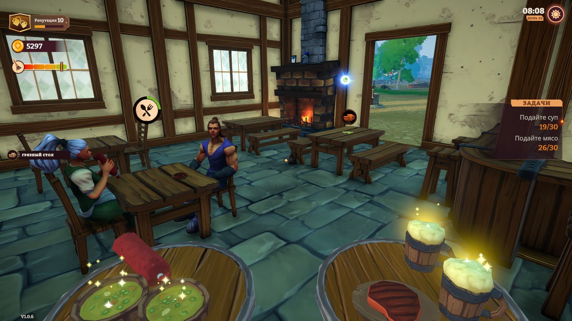 Приходится сталкиваться и с неприятной стороной повседневности. Посетители насвинячили? Швабру в зубы и в бой.! Посуду нужно собирать и мыть, столы протирать. Туалет типа деревенский сортир засорился? Удивляешься таланту седалища посетителя и приступаешь к отвратительной мини-игре. Не говоря уже, что дрова себя не нарубят и вода из колодца не материализуется.