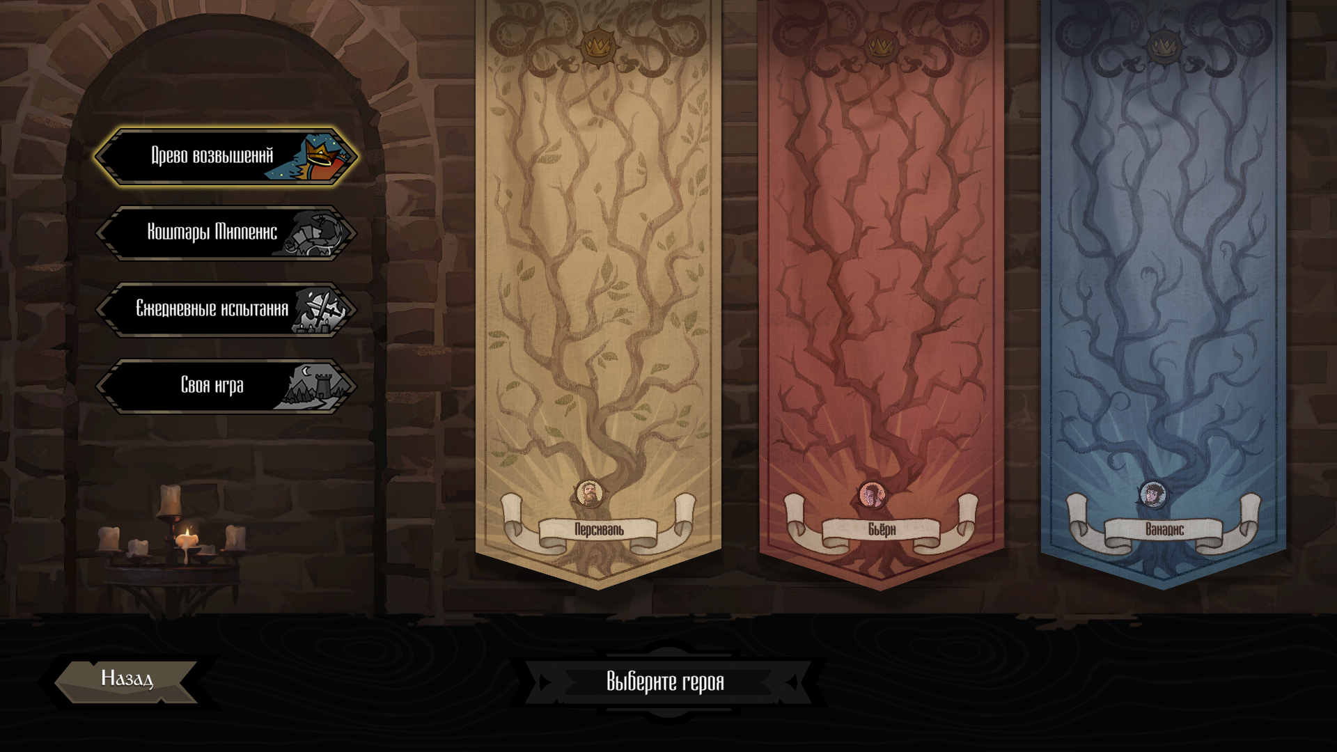 Для тех, кому мало сюжетной кампании существует вкладка «Испытания». На момент написания обзора испытания представлены только одним режимом «Древо возвышений». Это классический режим со случайной генерацией карты и «возвышениями», когда на игрока накладываются дополнительные штрафы, усложняющие прохождение.